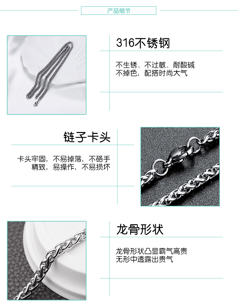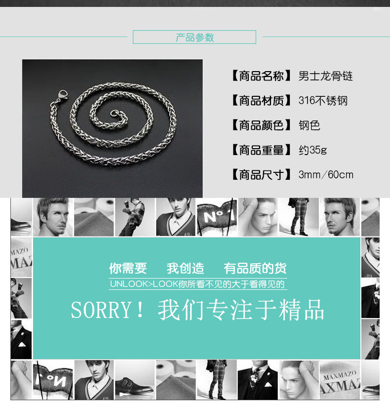 Cross-border 316 de acero inoxidable de acero de titanio collar de joyería de los hombres y las mujeres hip hop collar de alta sentido suéter cadena en la acción al por mayor