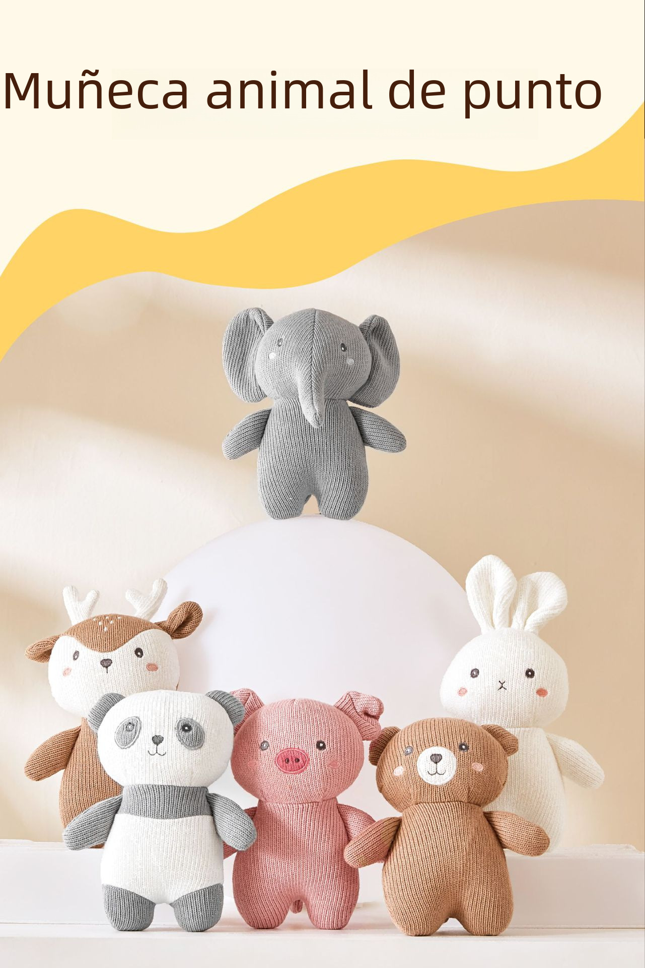 Bebé calmante muñeca de algodón de lana de punto elefante Panda ciervo conejo oso de peluche muñeca bebé mordedura-resistente