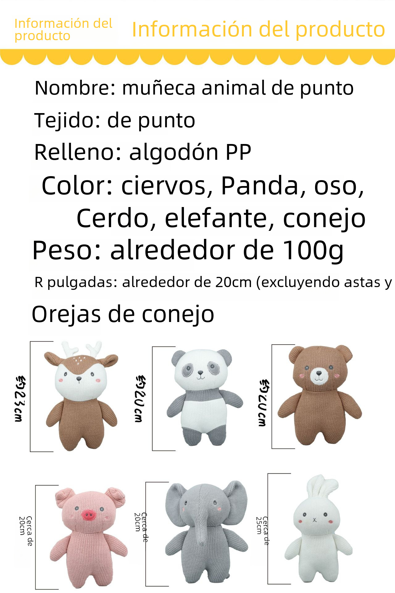 | Material de relleno | Algodón PP |