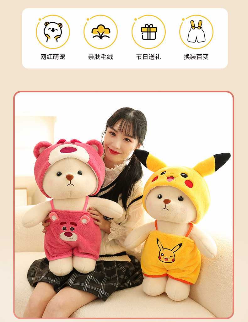 | Color | Punto de cross-dressing,Oso de fresa Cross-dressing,Traje Pikachu,Travesaño de gato KT |