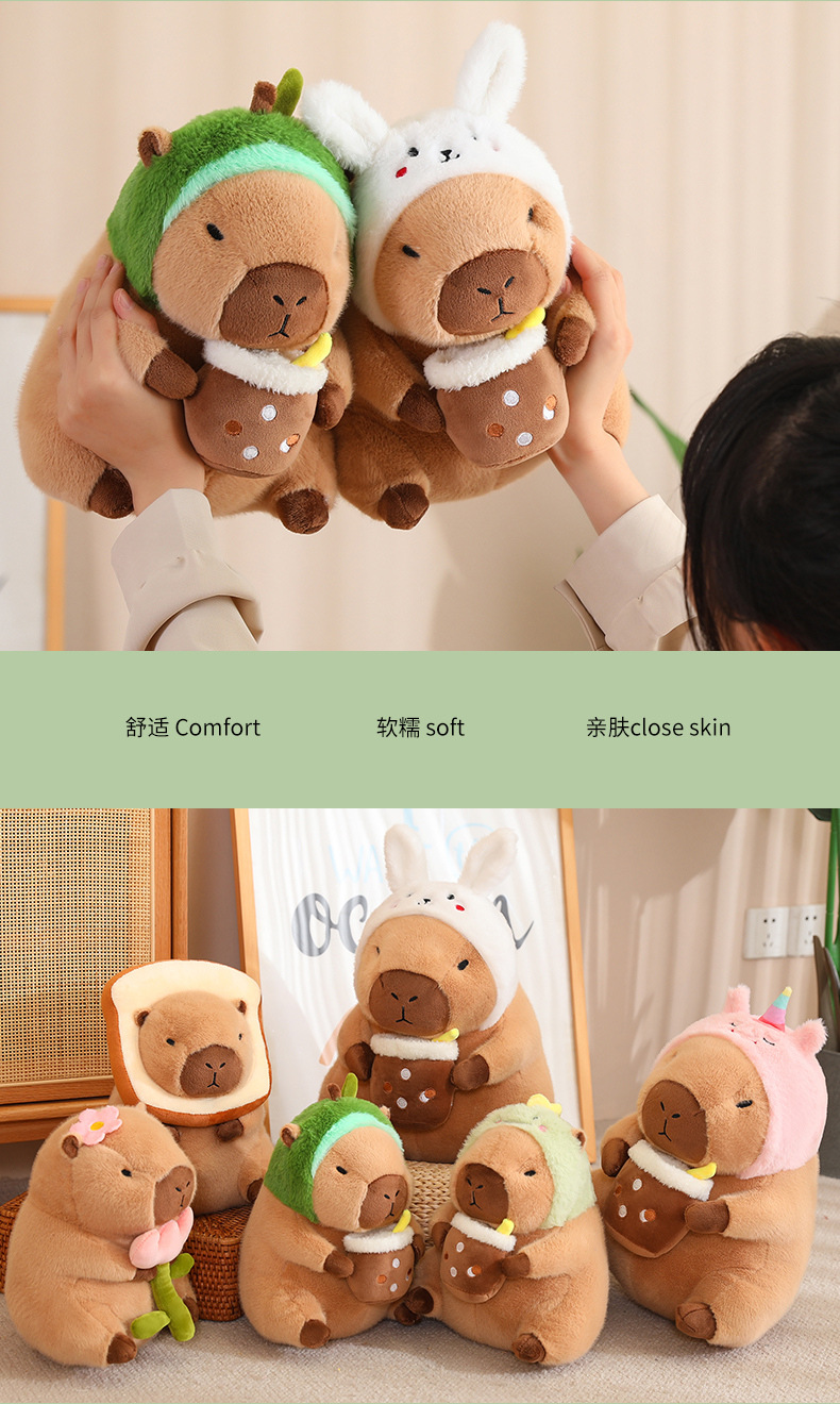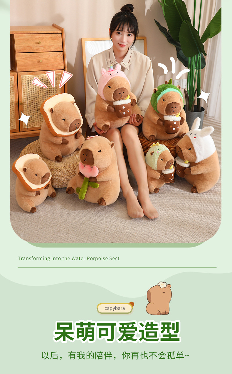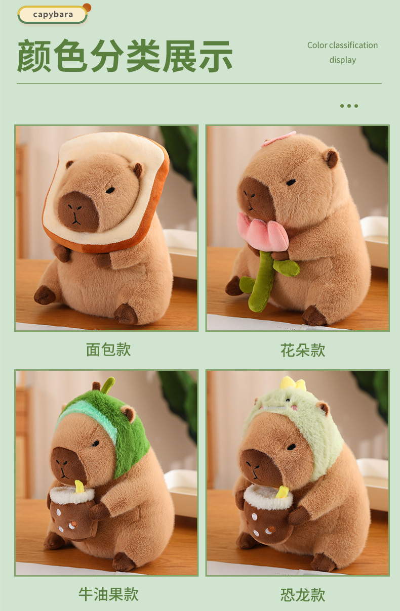 En línea de dibujos animados celebridad en stock transformación capybara puerta agua conejillo Guinea pan aguacate dinosaurio flor muñeca juguete felpa
