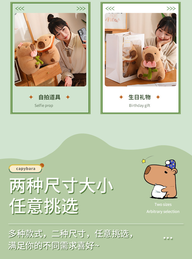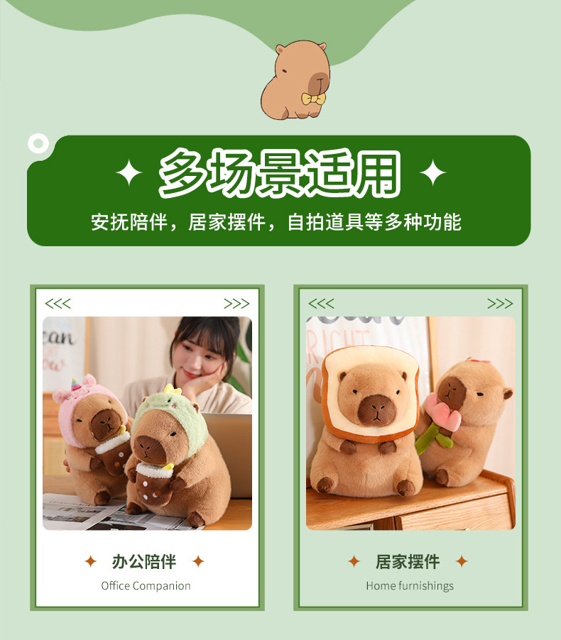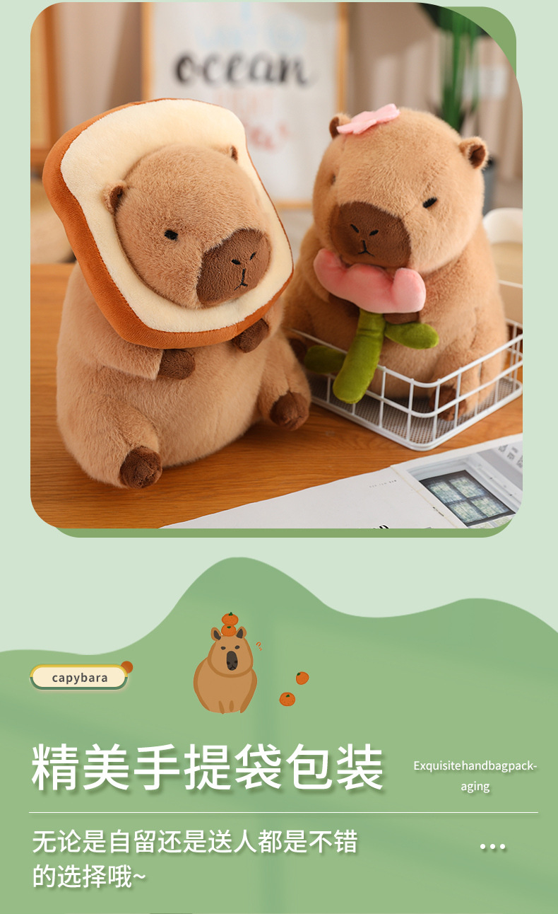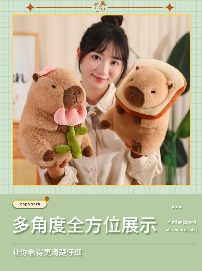 En línea de dibujos animados celebridad en stock transformación capybara puerta agua conejillo Guinea pan aguacate dinosaurio flor muñeca juguete felpa