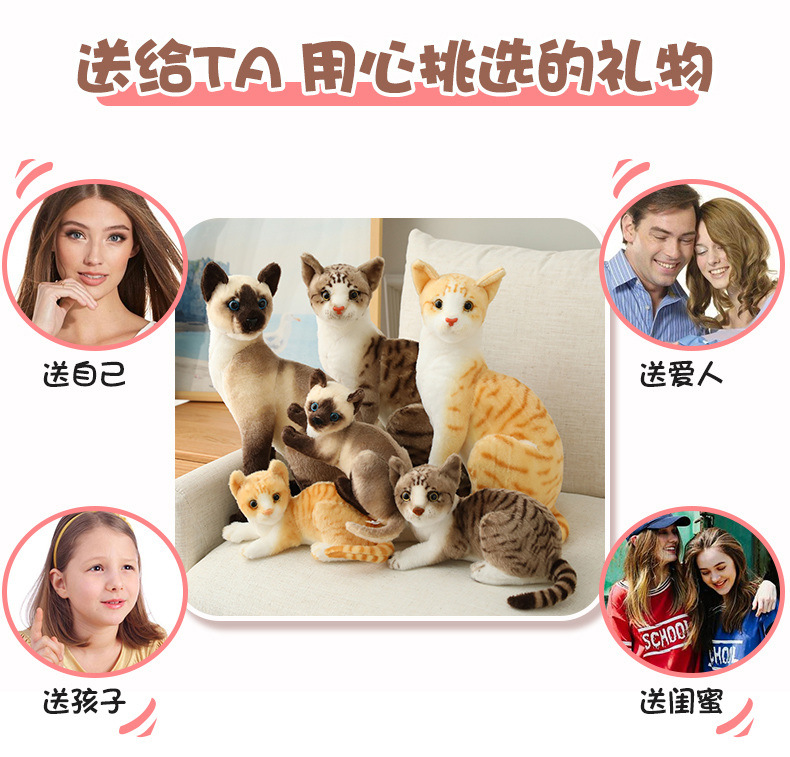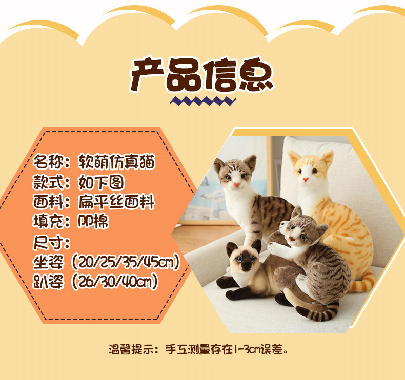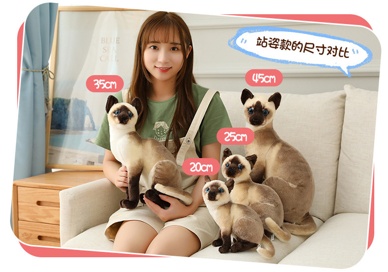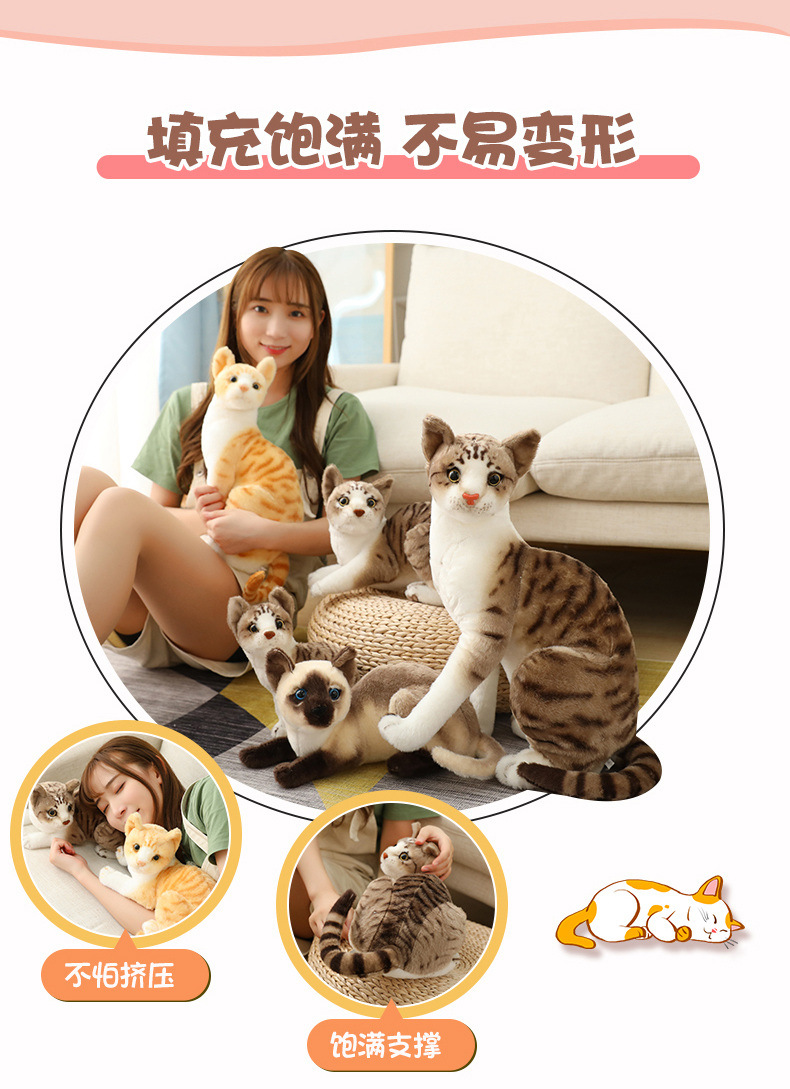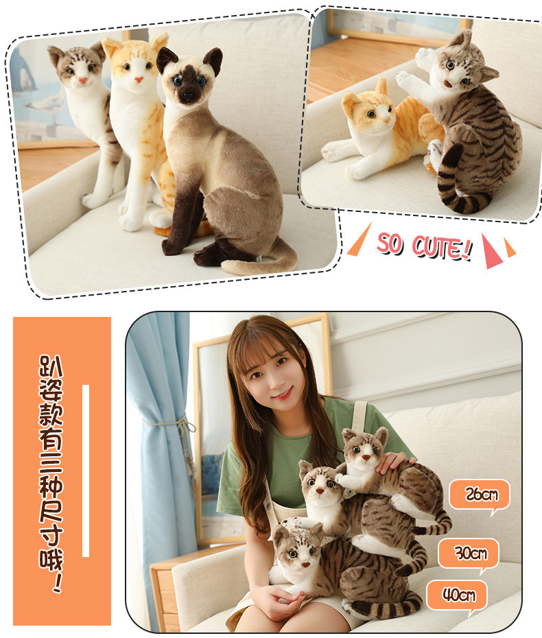 Cruz-frontera simulación gato muñeca realista de peluche juguete corto felpa gato muñeca Siamés gato naranja gato muñeca al por mayor