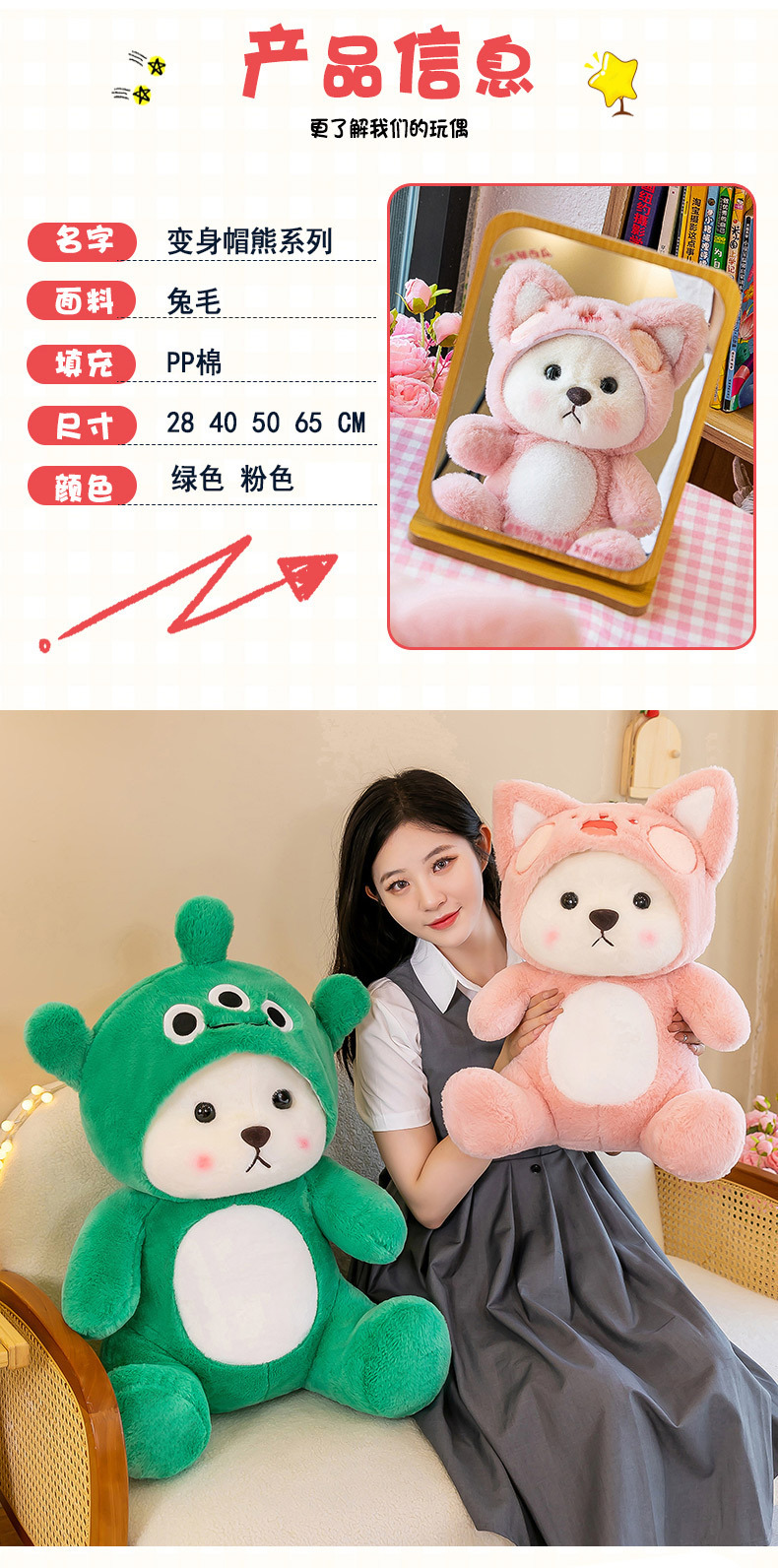 En línea celebridad transformación oso de peluche muñeca de juguete regalo de San Valentín para novia muñeca almohada regalo de cumpleaños