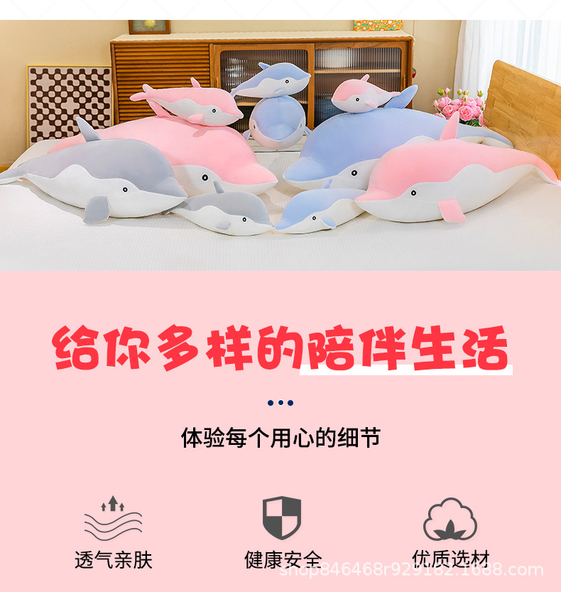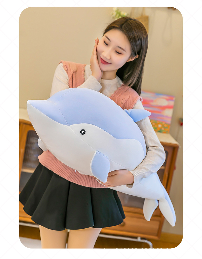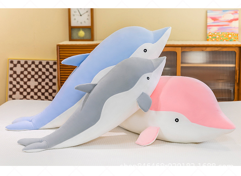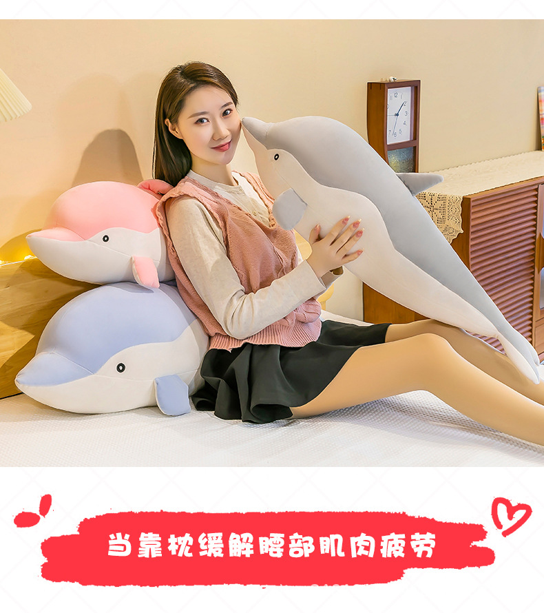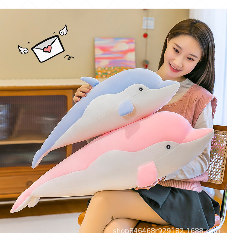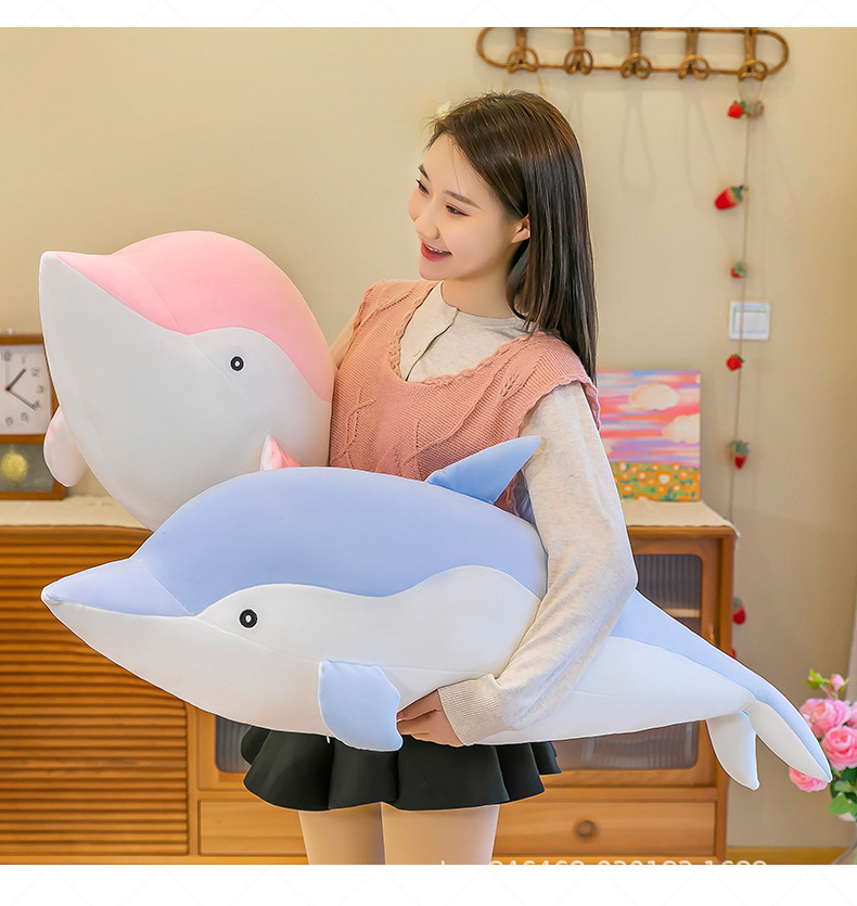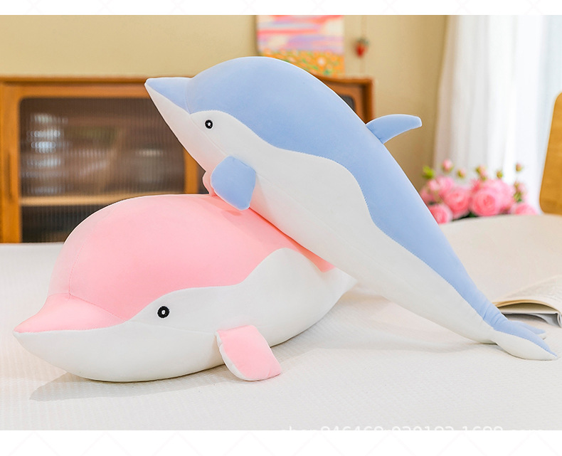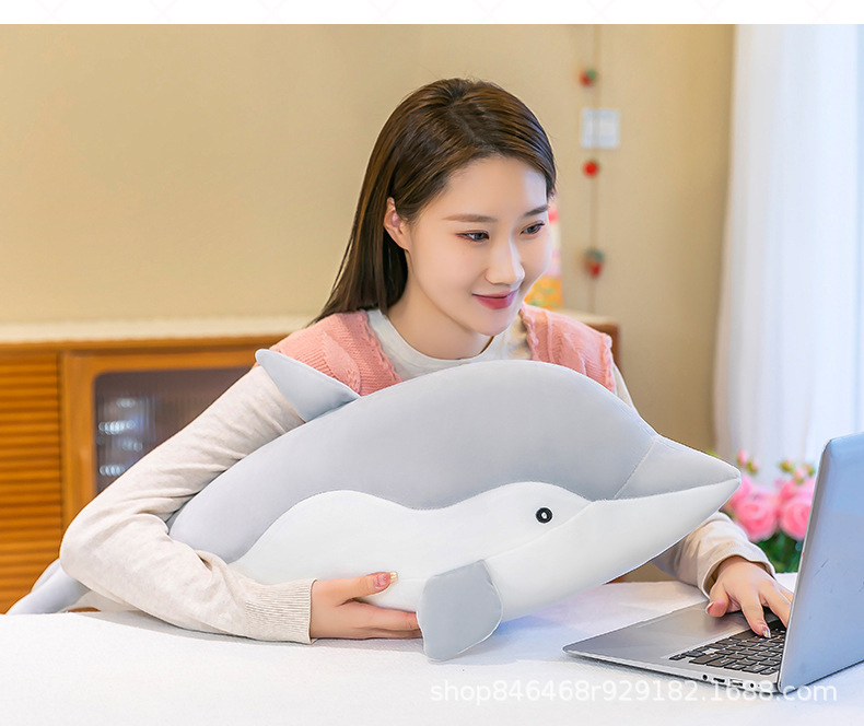 En línea popular lindo Delfín de dibujos animados almohada juguete felpa dormir pierna clip muñeca regalo cumpleaños para las niñas