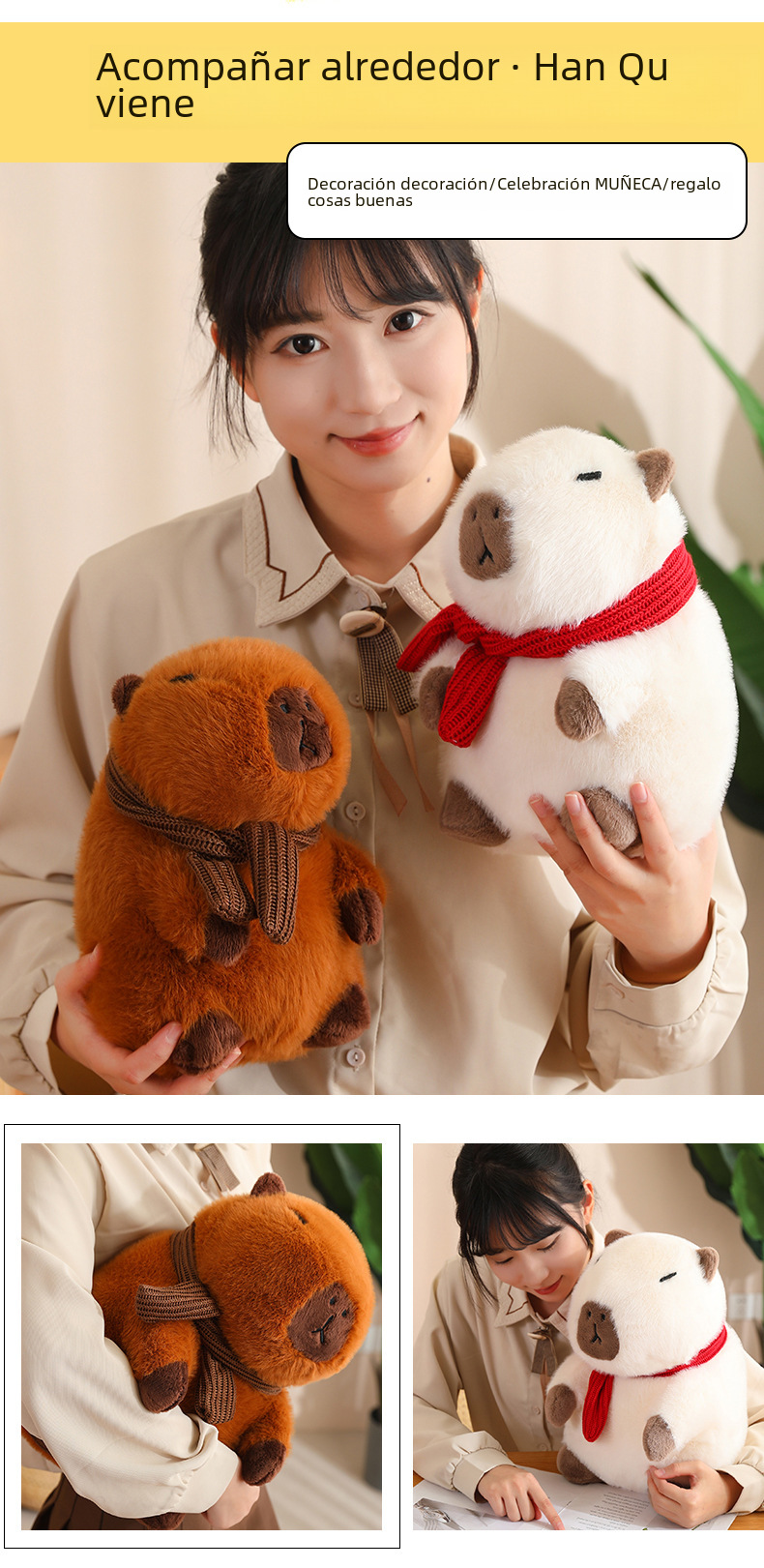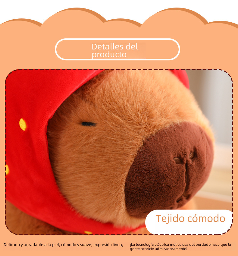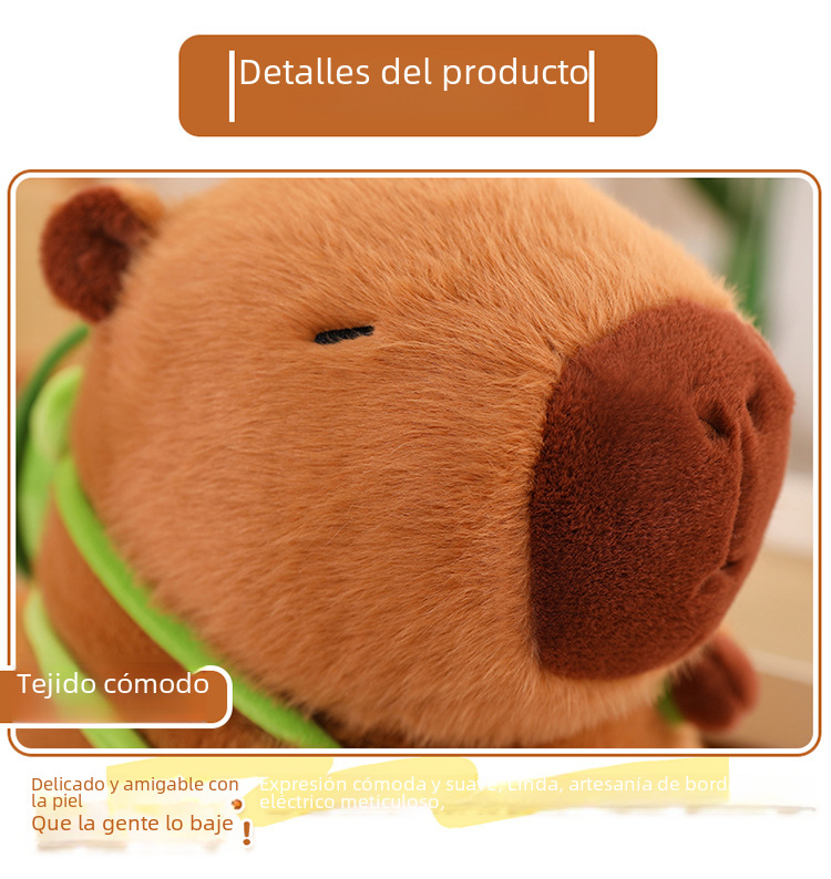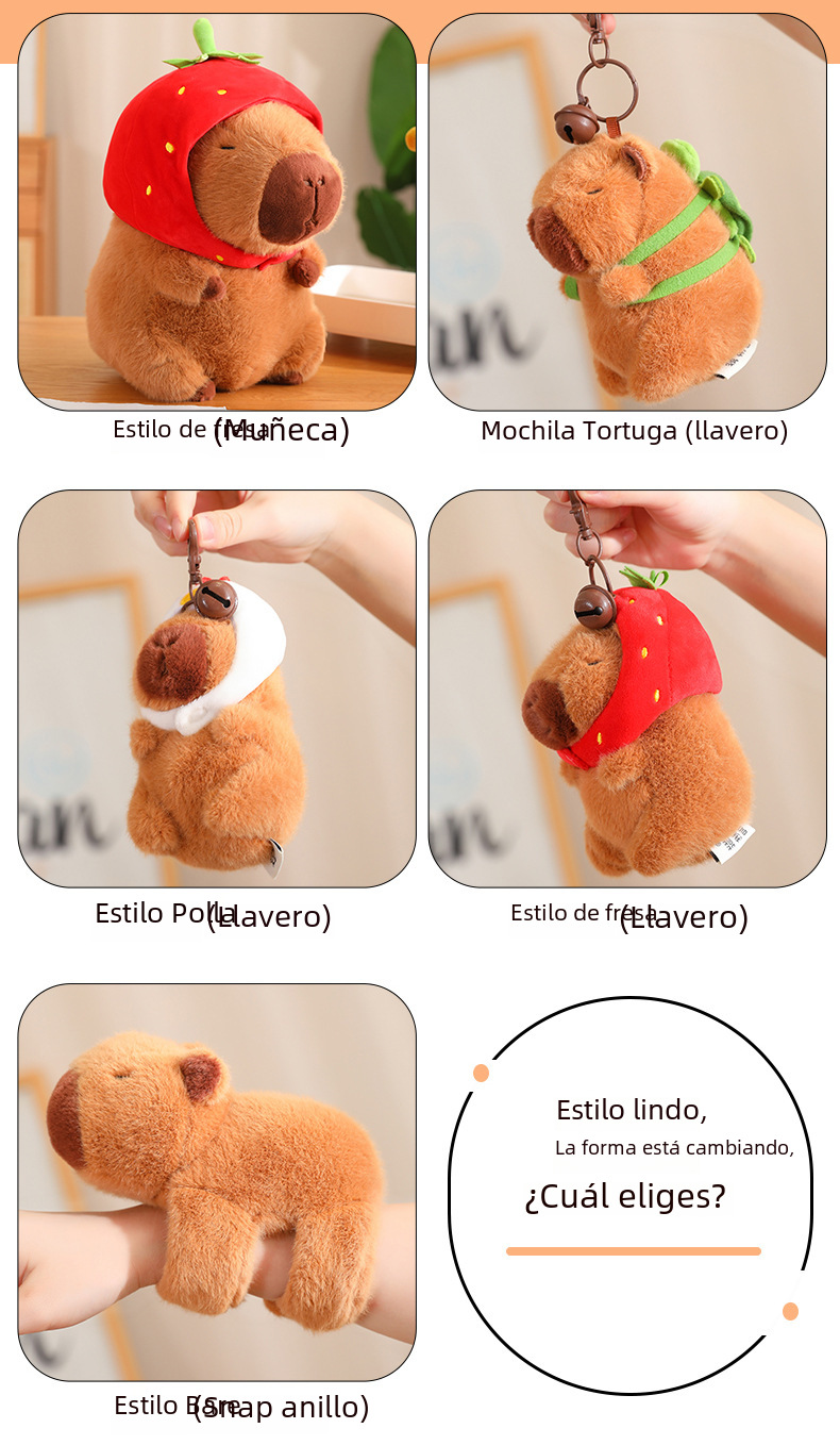 | Colores | Muñeca tortuga,Muñeca fresa,Bufanda blanca, muñeca capibara,Muñeca carpincho bufanda marrón,Colgante de mochila de tortuga,Colgante de fresa,Círculo,Nariz |