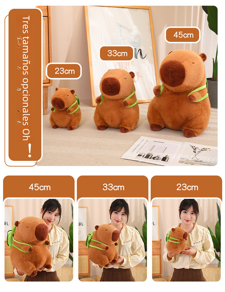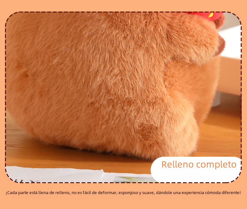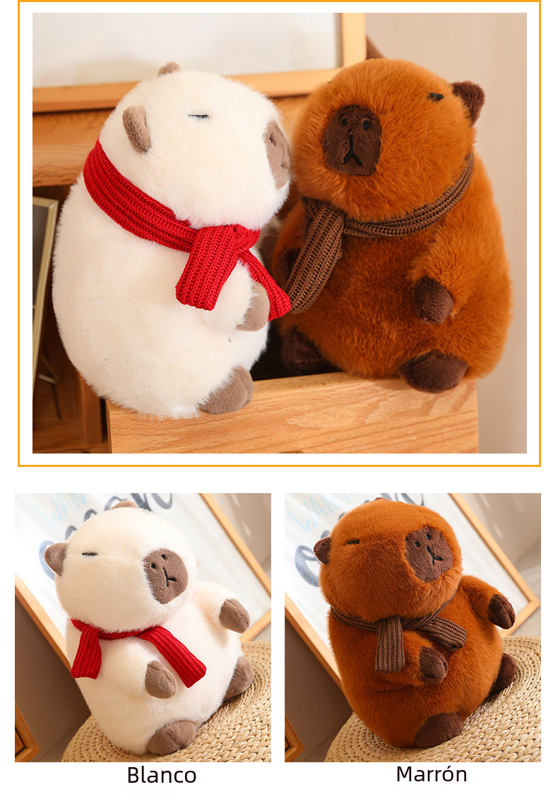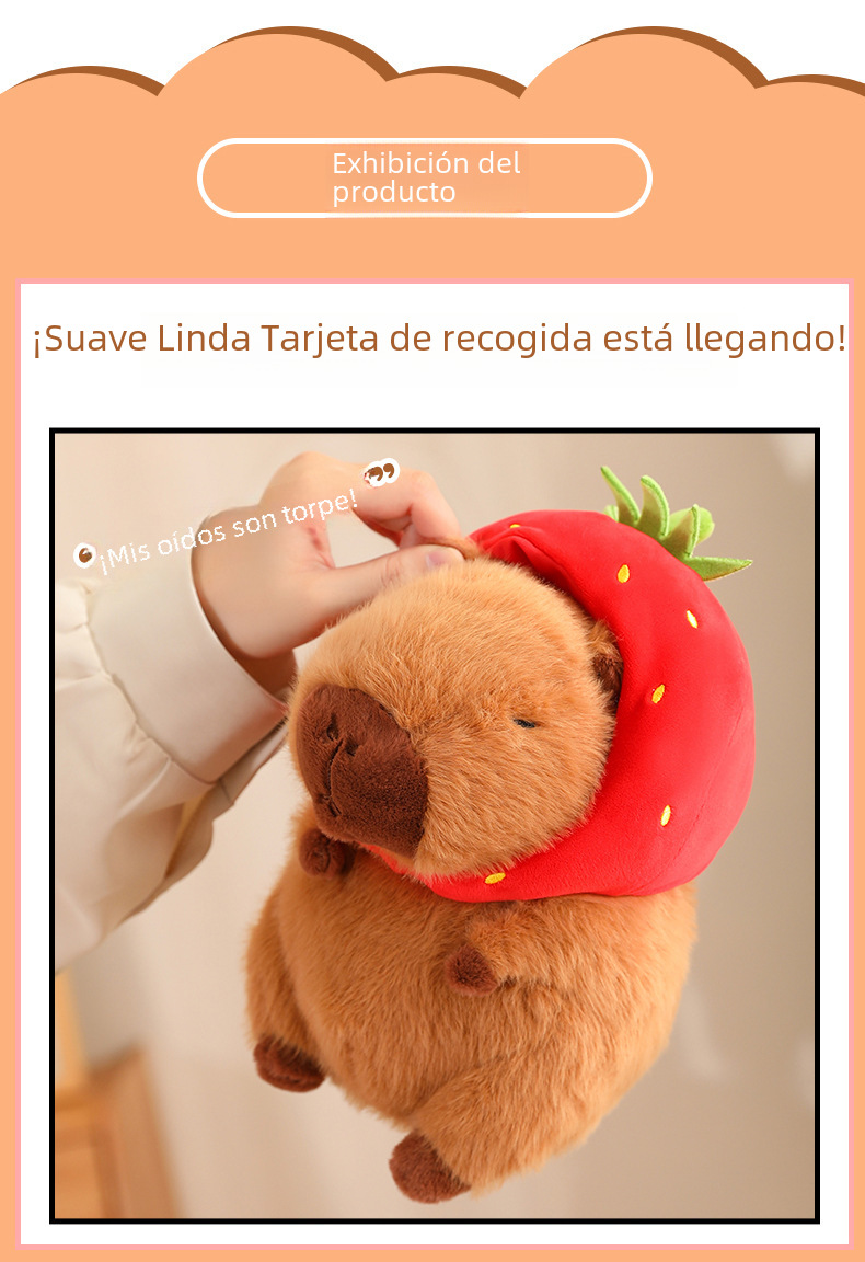| Colores | Muñeca tortuga,Muñeca fresa,Bufanda blanca, muñeca capibara,Muñeca carpincho bufanda marrón,Colgante de mochila de tortuga,Colgante de fresa,Círculo,Nariz |