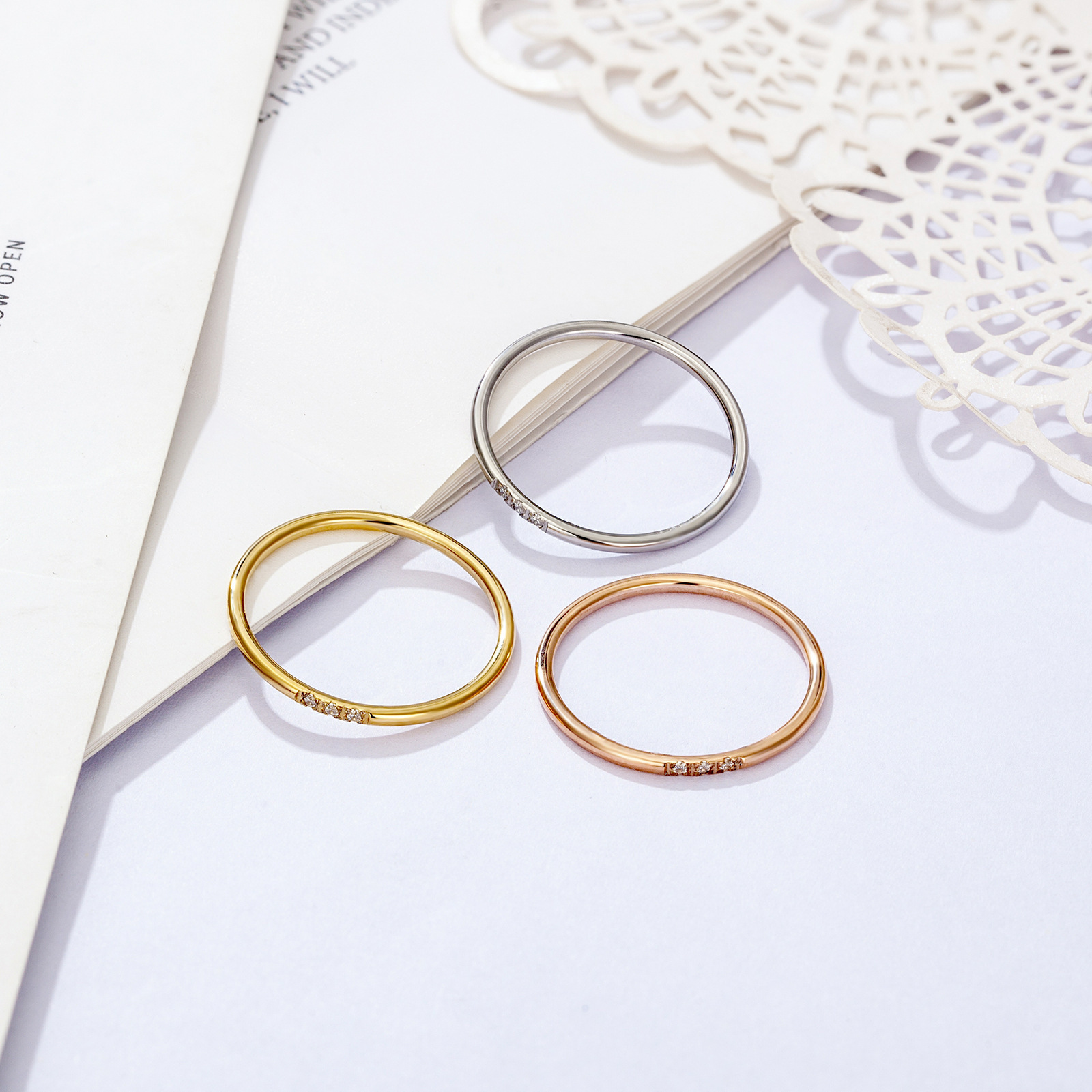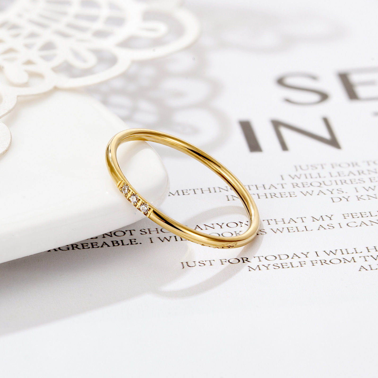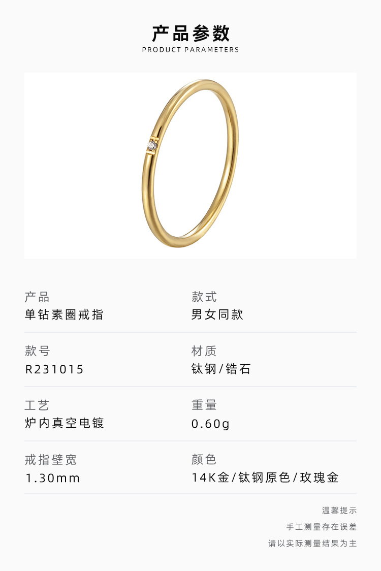 Anillo de diamantes de circón transfronterizo 14k anillo de diseño de nicho simple anillo femenino de acero de titanio sin decoloración joyería al por mayor