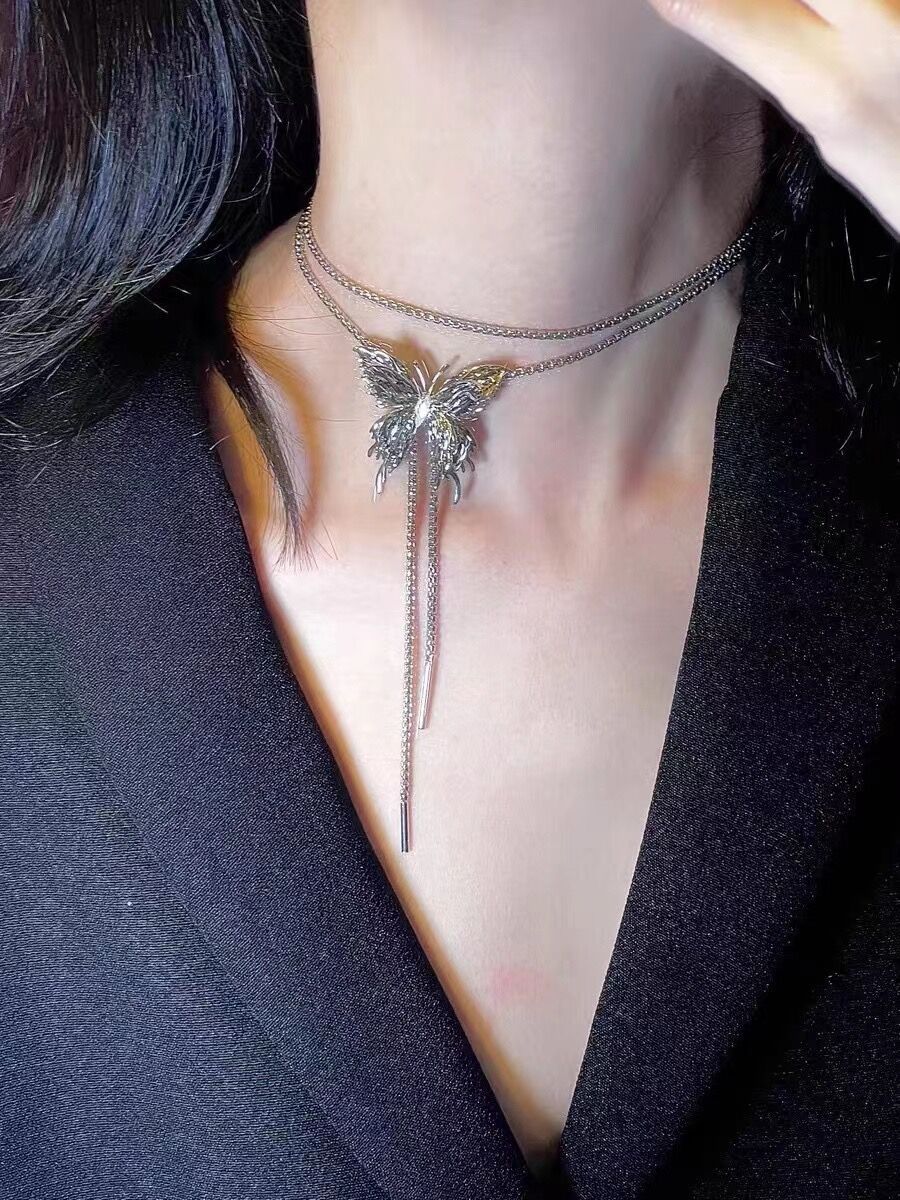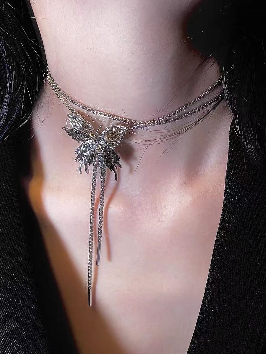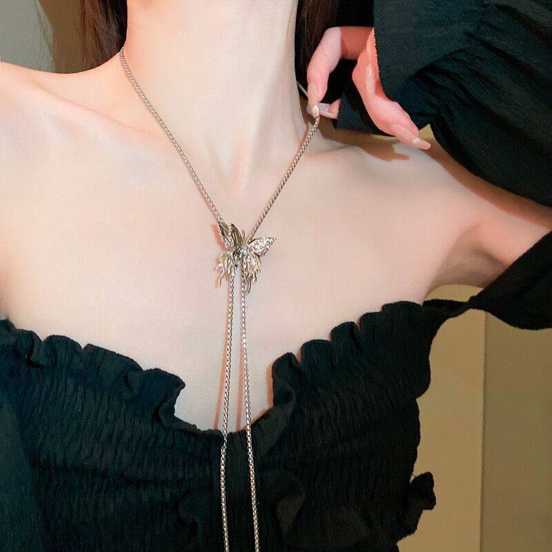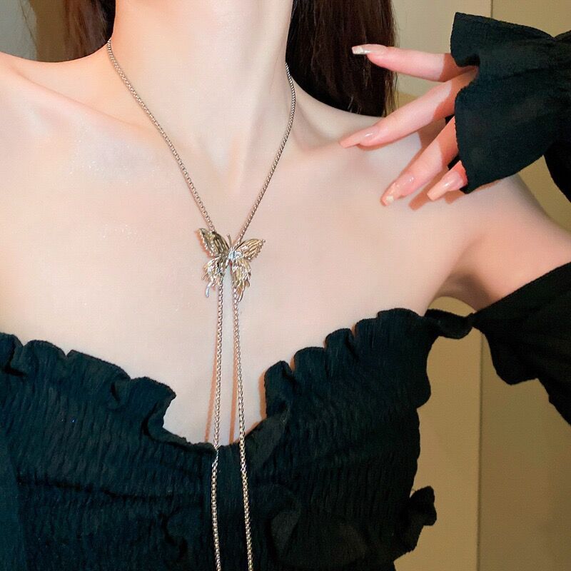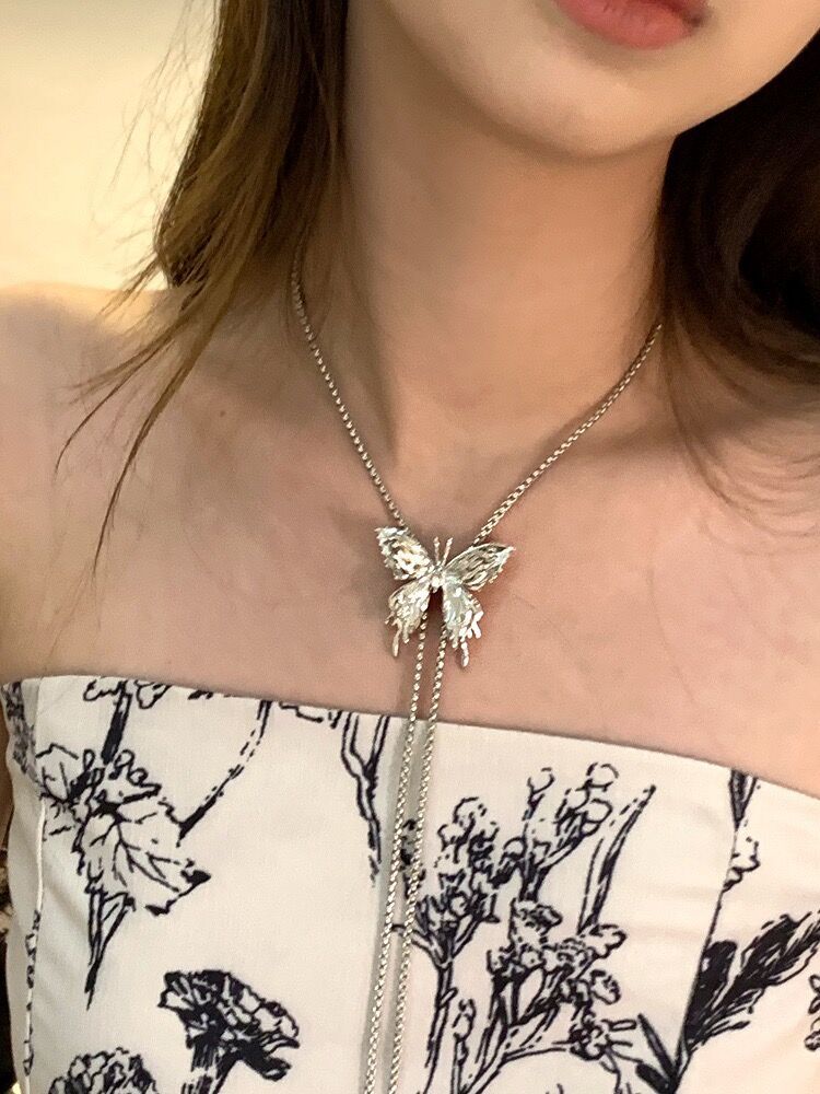 Tirar collar de mariposa para las mujeres 2023 nuevo popular moda lujo nicho exagerado largo clavícula collar cuello accesorios verano