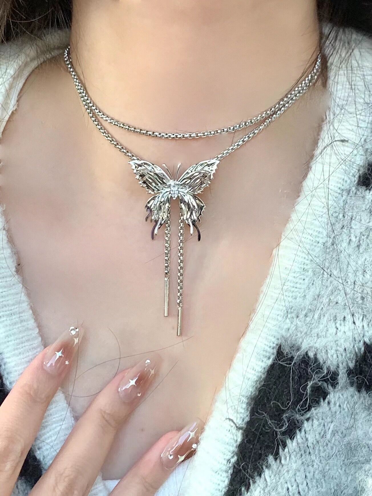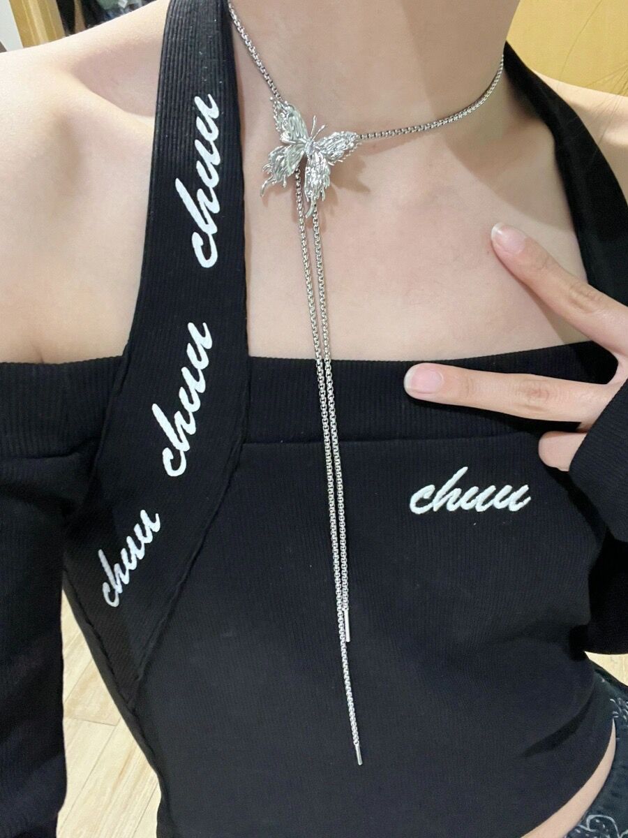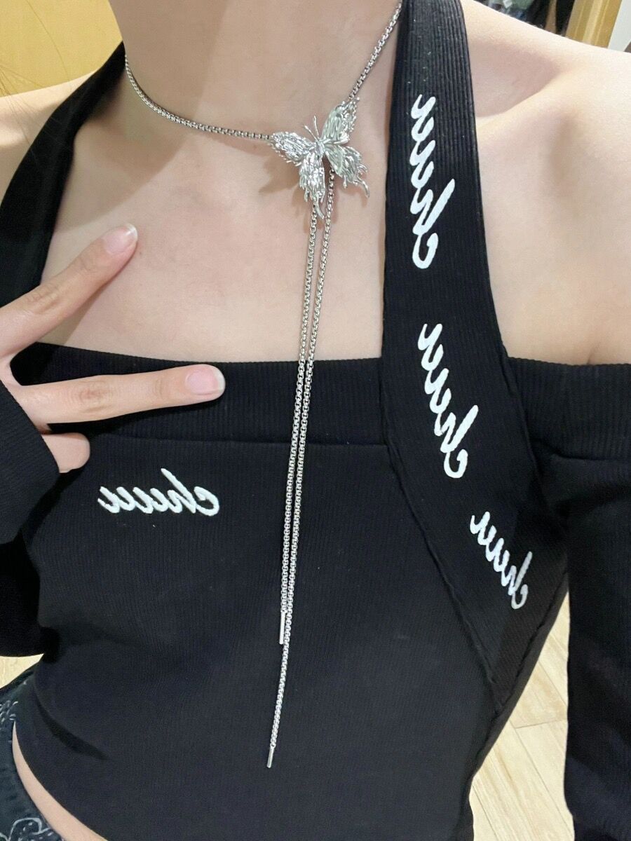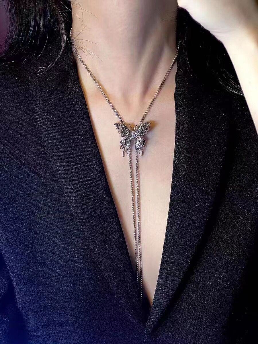 Tirar collar de mariposa para las mujeres 2023 nuevo popular moda lujo nicho exagerado largo clavícula collar cuello accesorios verano
