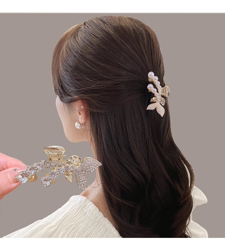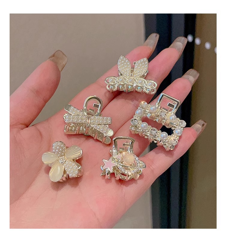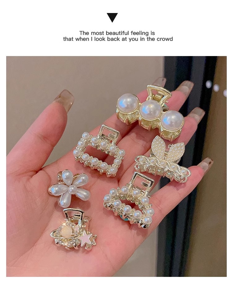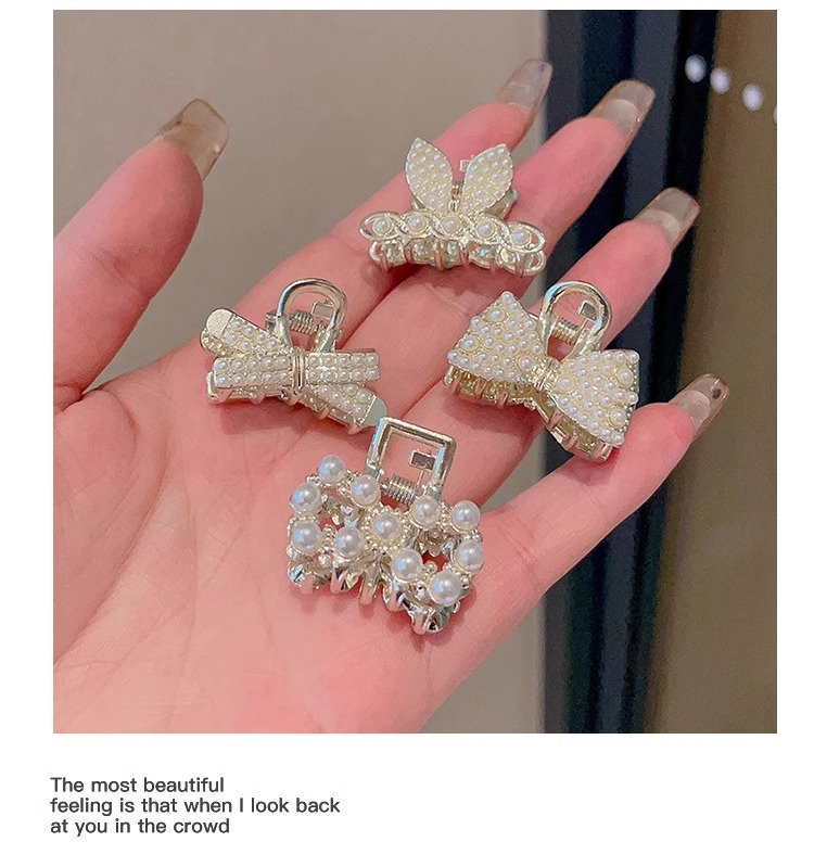 Nuevo medio lazo pelo pequeño clip simple tiburón clip accesorios para el cabello para las mujeres Pequeño clip de metal tamaño pequeño perla horquilla rota 2024