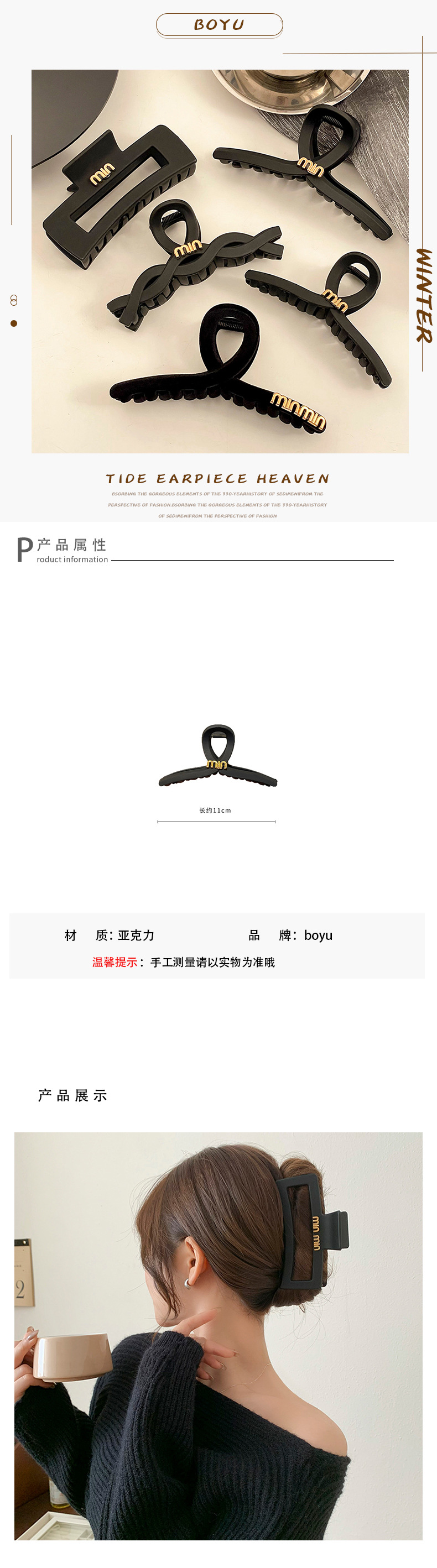 | Color | 13 # quilla helada,1 # clip cuadrado negro,1 # negro Clip 11cm,15 # giro negro,Agarrador negro irregular 14 #,6 # negro mate cuadrado pinza 12,5 cm,10 # Negro Cruz 13CM,9 # mate negro perla 13cm,10 # Negro flocado 13CM,11 # Negro amor flocado 13CM,1 # minmin letter-11CM,1 # style-11CM esmerilado,2 # twist-10.5CM esmerilado,3 # rectangular-10CM esmerilado,4 # Crescent-8.5CM esmerilado,6 # esmerilado rectangular 12,5 CM,7 # helado y palabra 12,5 CM,8 # flocado y palabra 12,5 CM |