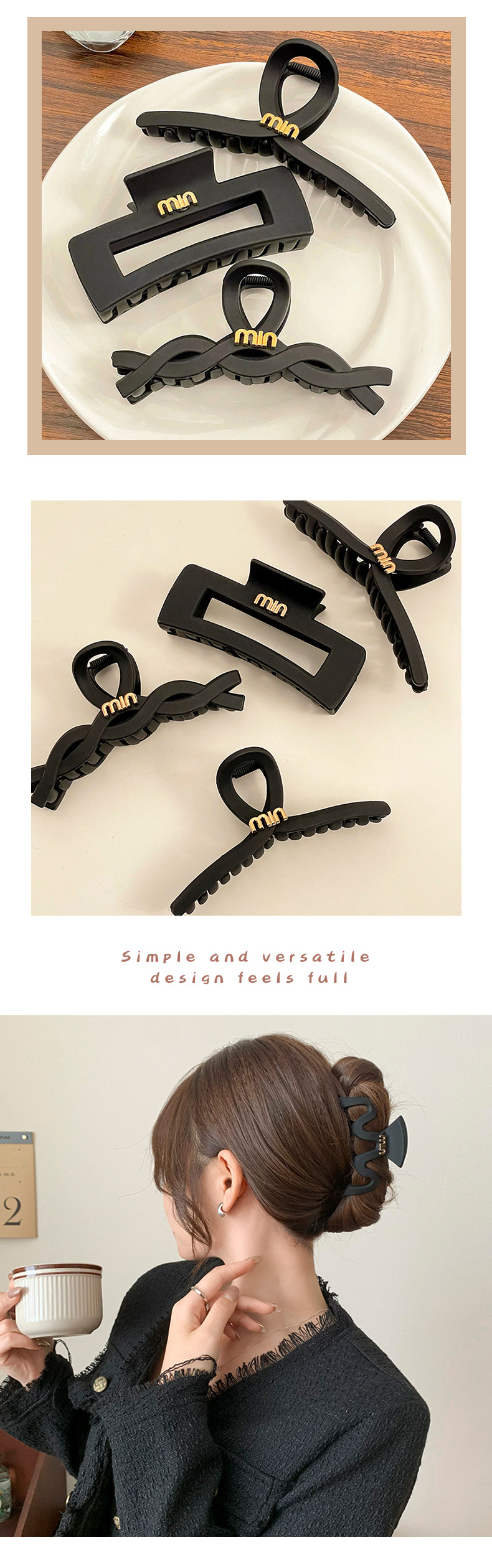 Pinza de pelo esmerilado negro horquilla femenina celebridad de Internet 2023 nueva Cabeza trasera clip de tiburón pelo Chuck clip de pelo tocado