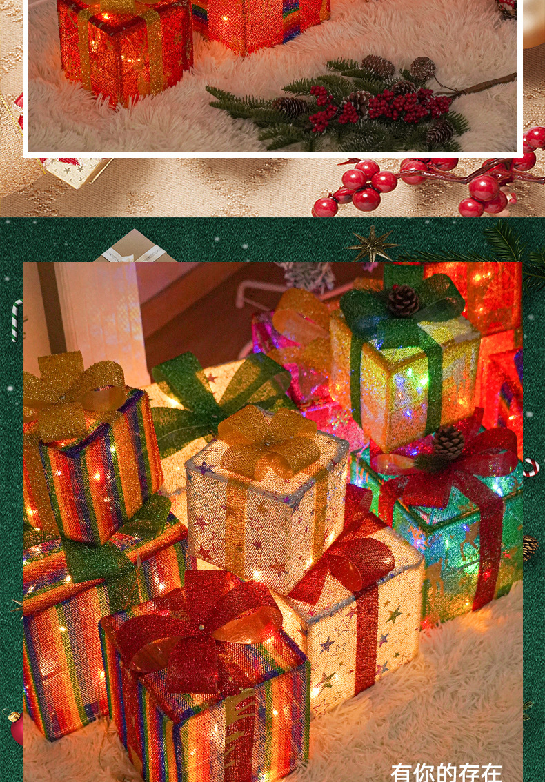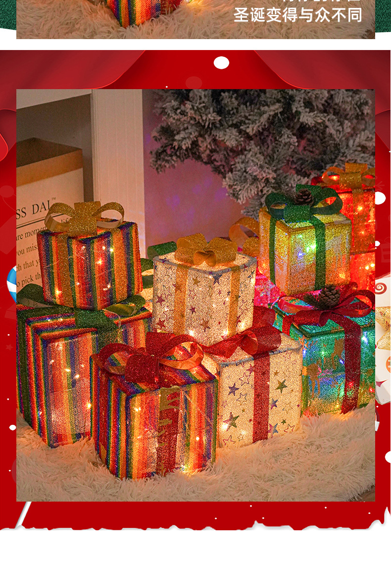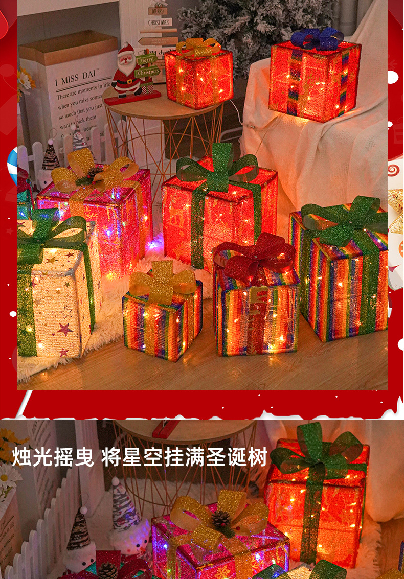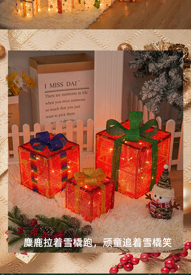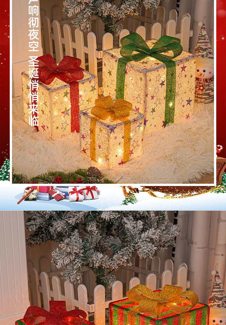 Directo de fábrica transfronteriza nueva caja de regalo de Navidad LED de tres piezas conjunto de lámpara de modelado de Navidad diseño de escena Lámpara decorativa