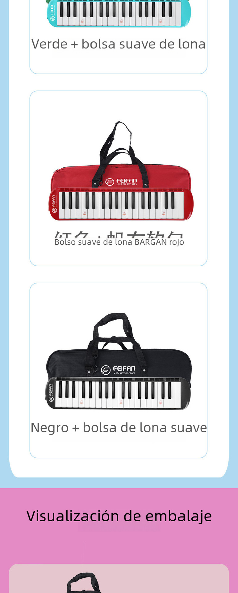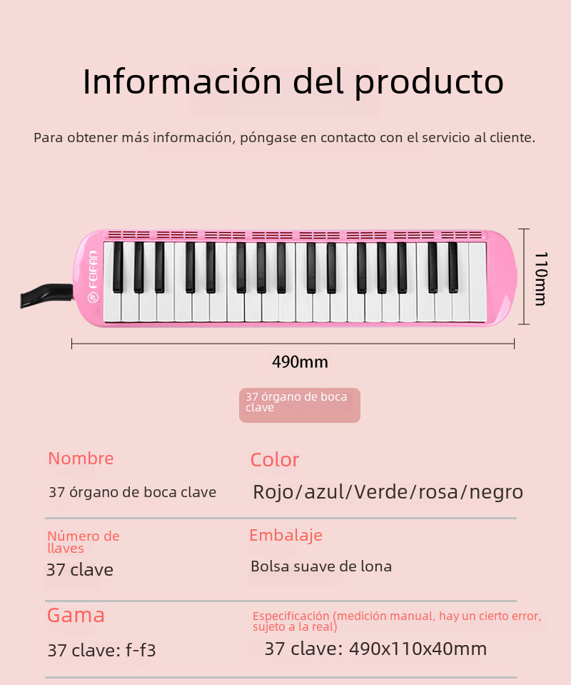 | Colores | 37 teclas rojo,37 teclas verde,37 teclas azul,37 teclas rosa,37 teclas negro |