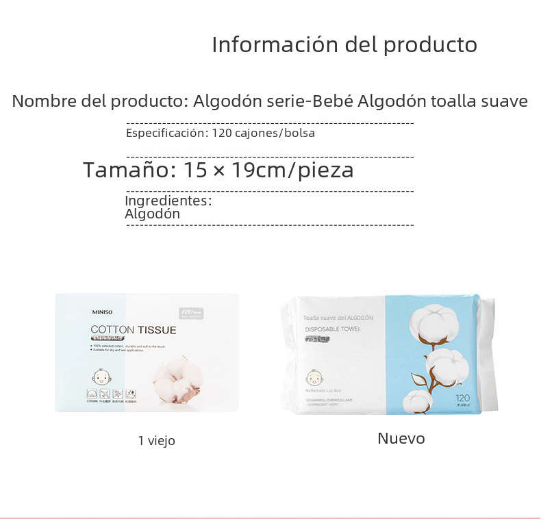 Paquete individual * 120 piezas-Toalla facial de algodón para bebés