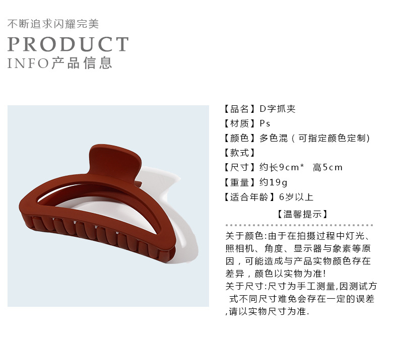 En FORMA DE D gran tiburón pelo agarre hecho a mano esmerilado pelo clip de nuevo cabeza de las mujeres updo pelo clip accesorios para el cabello al por mayor