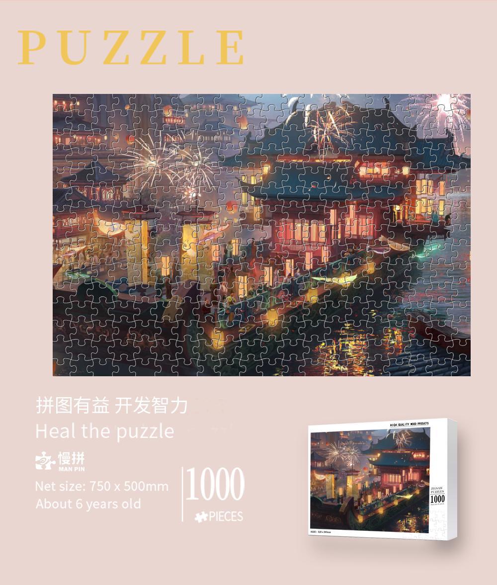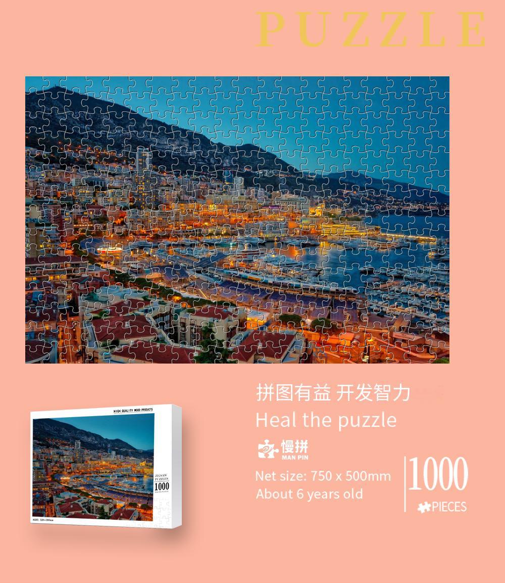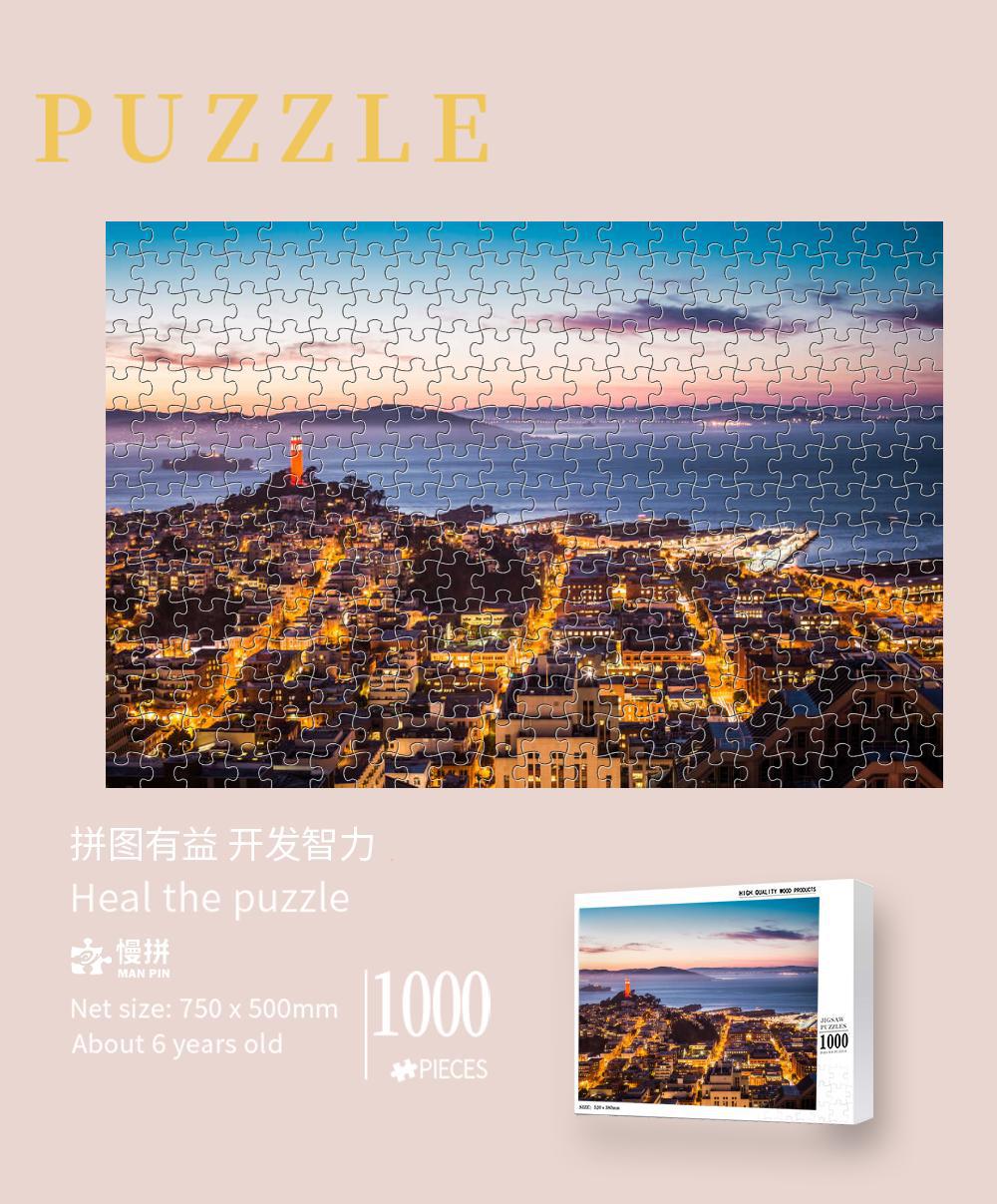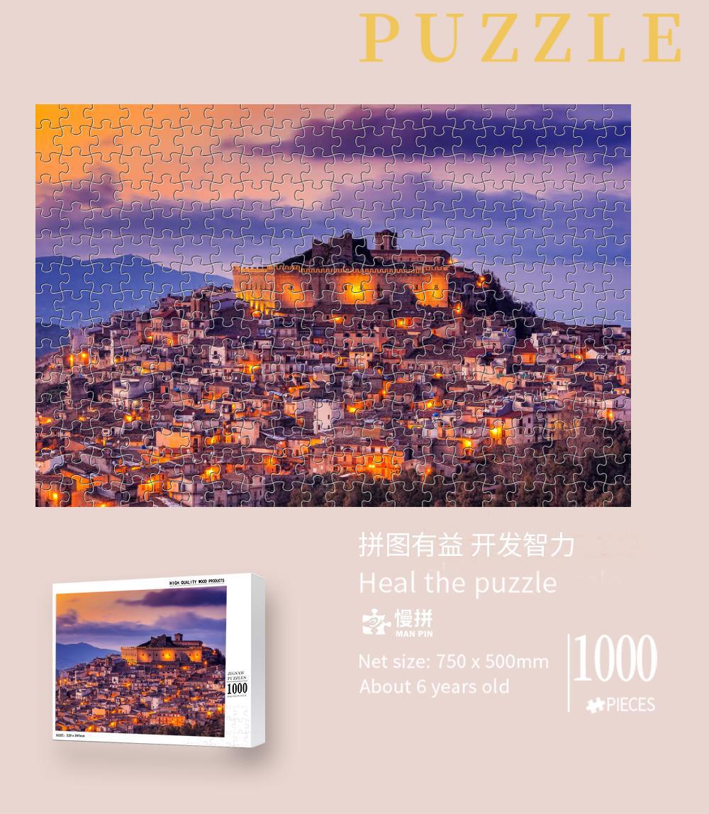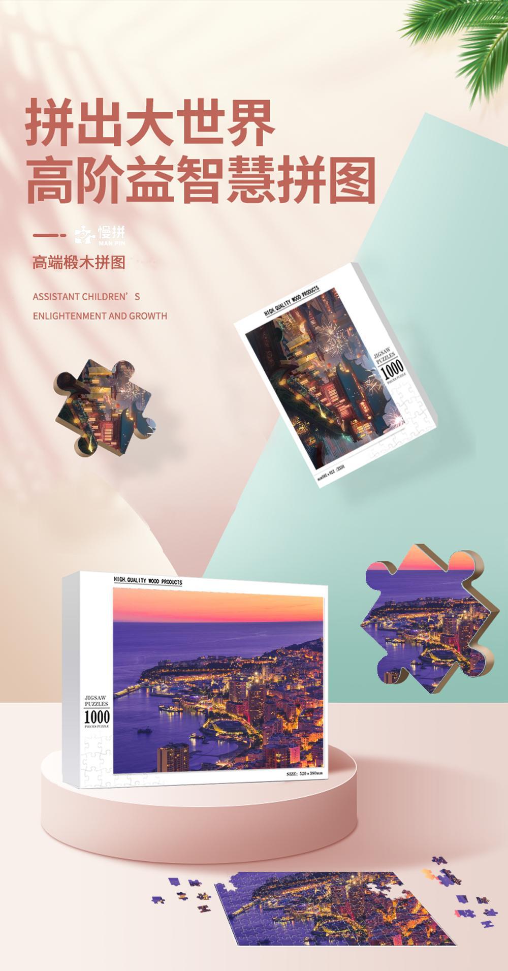 Miles de luces rompecabezas 1000 piezas de madera para niños adultos juguetes 500 piezas 300 piezas al por mayor paisaje entrega de una pieza