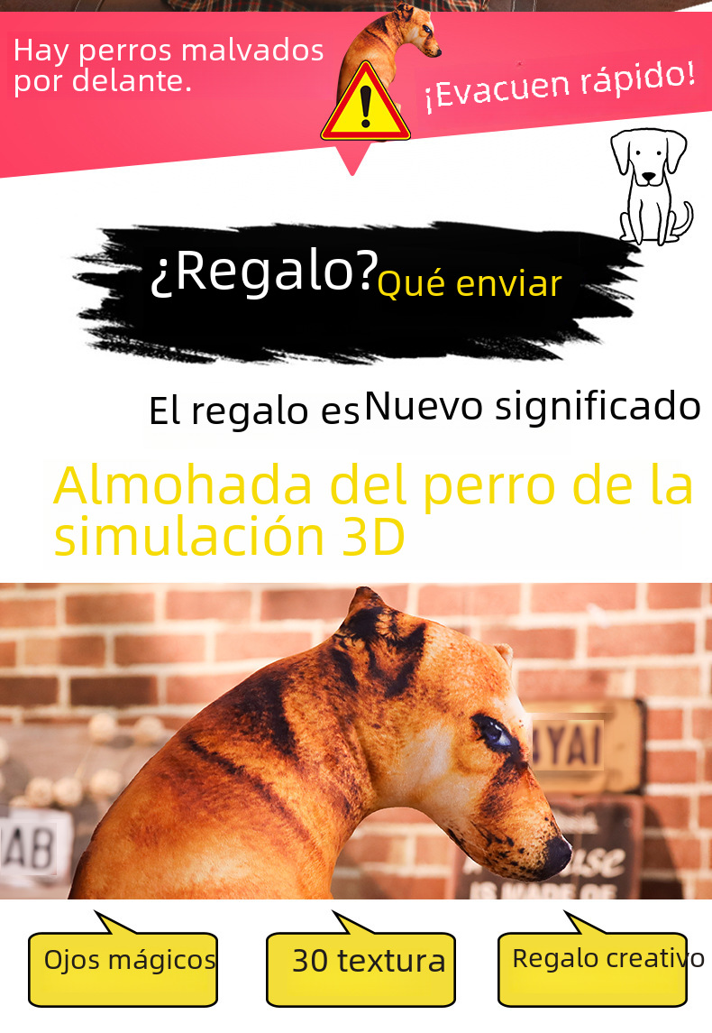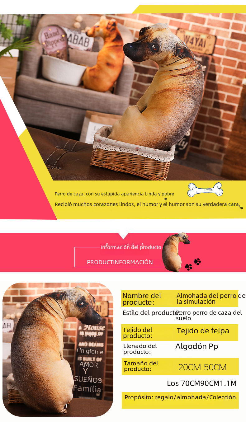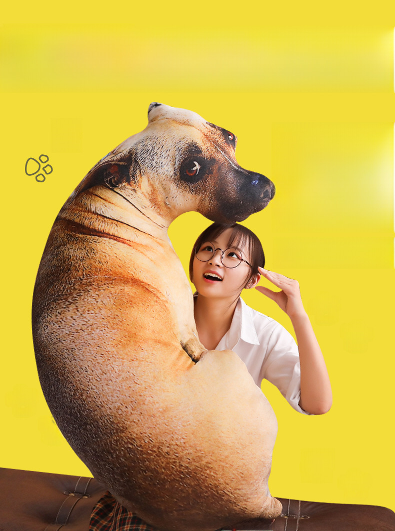 Creativo 3D simulación perro almohada de peluche perro muñeca fábrica directa de una pieza de entrega puede agregar logo