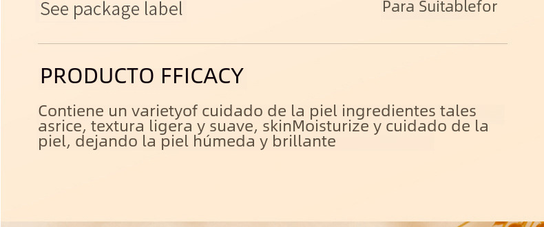 • Efecto luminoso:El producto tiene un efecto luminoso, que ayuda a iluminar el tono de piel, dándole un aspecto más saludable y radiante.