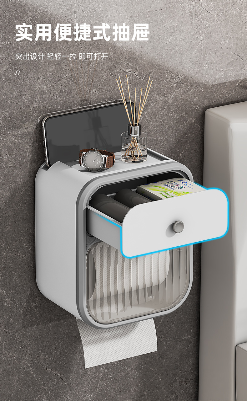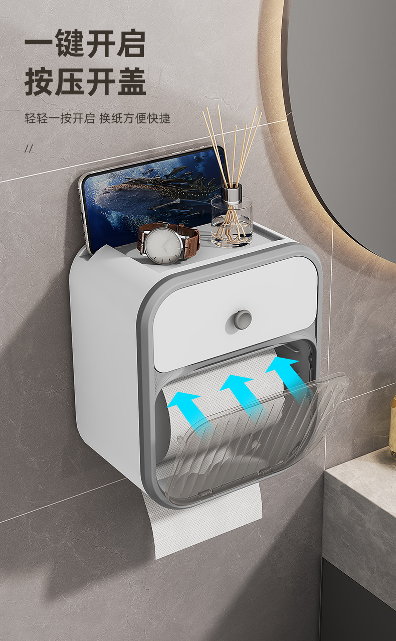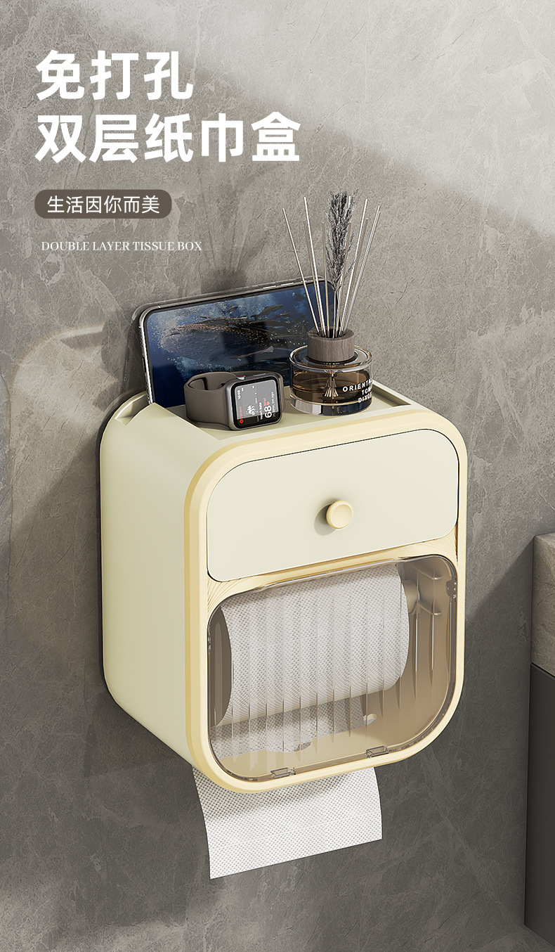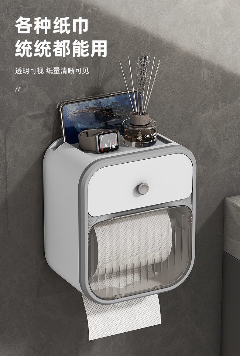 Caja de toallas de papel colgada en la pared sin perforación baño ligero de lujo estantes transparentes caja de almacenamiento doméstica caja de extracción simple caja de plástico