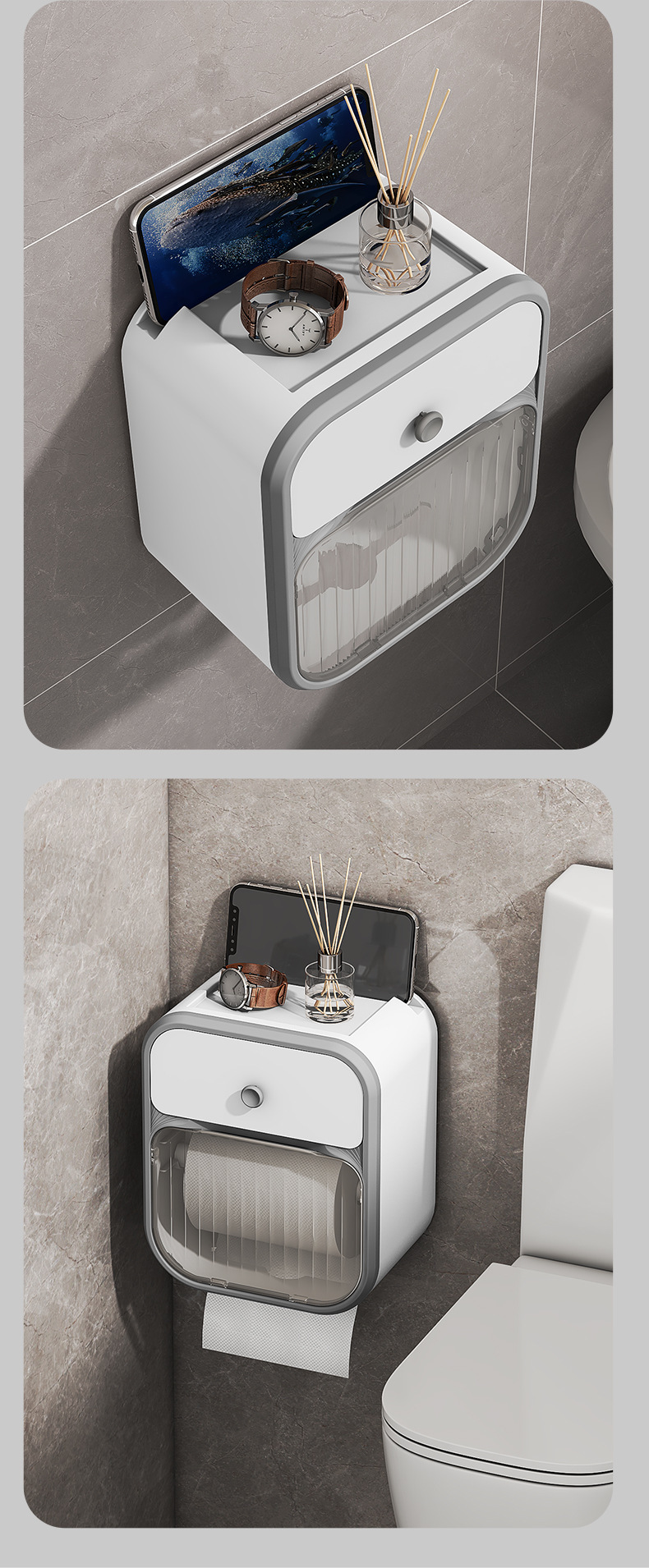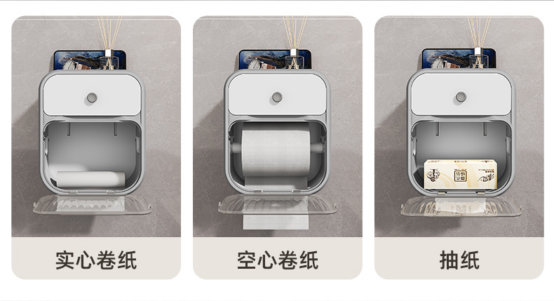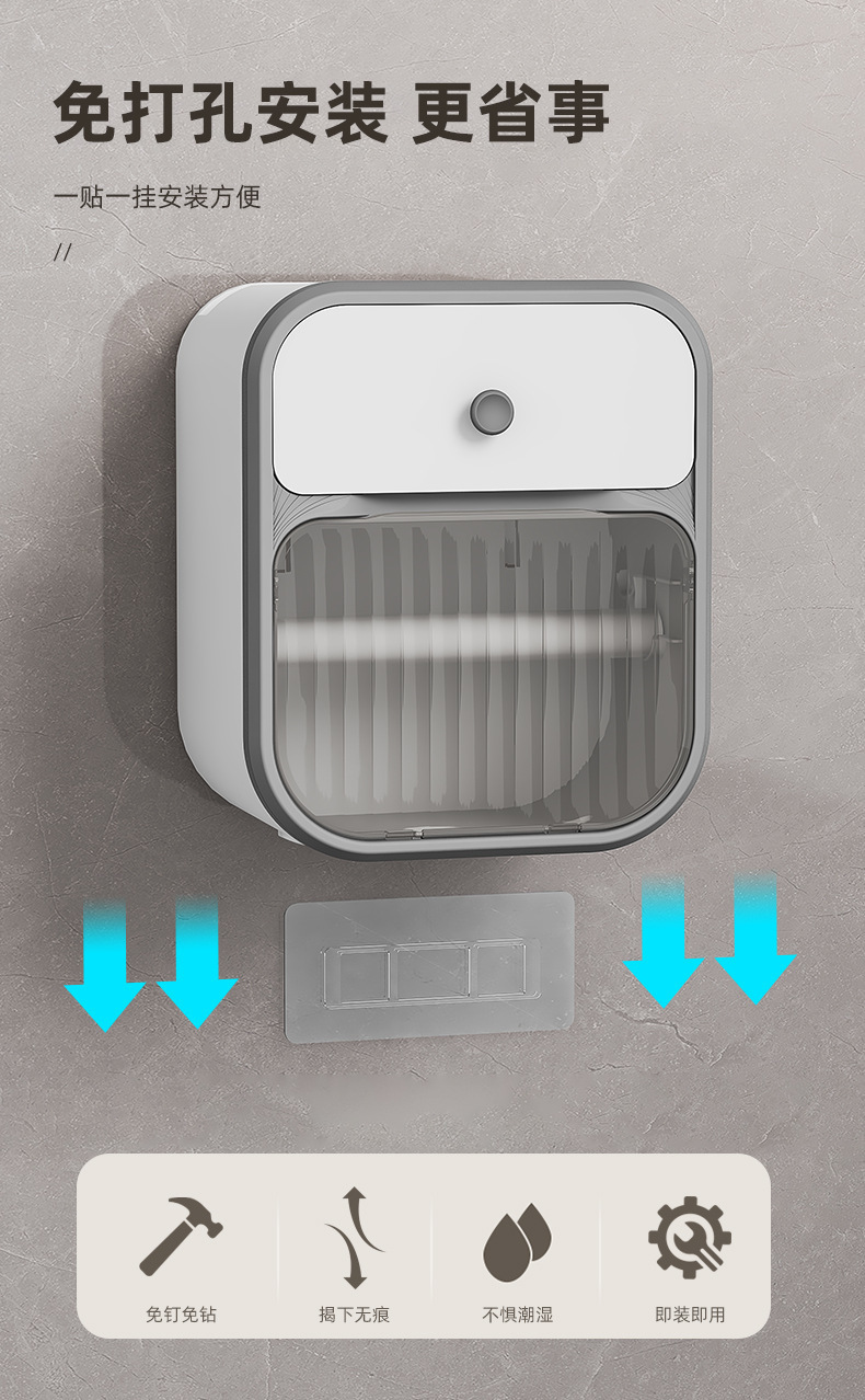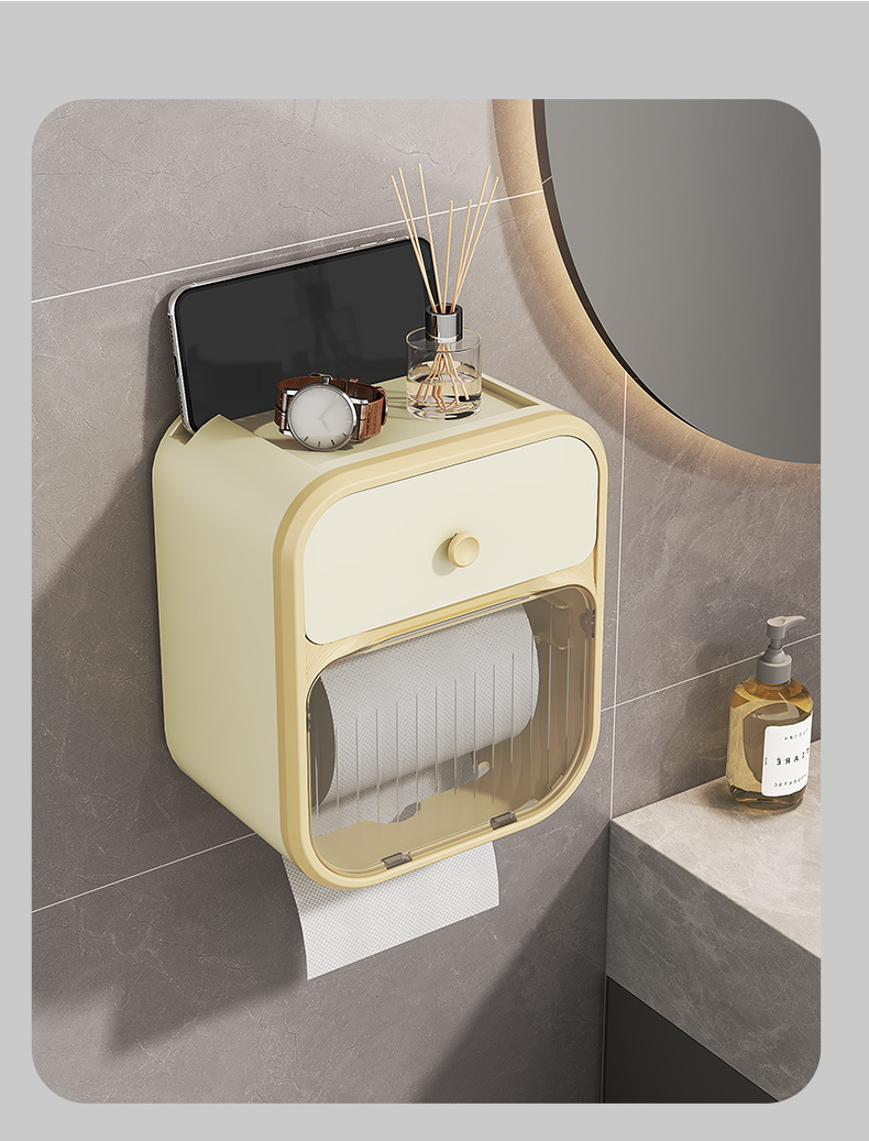 Caja de toallas de papel colgada en la pared sin perforación baño ligero de lujo estantes transparentes caja de almacenamiento doméstica caja de extracción simple caja de plástico
