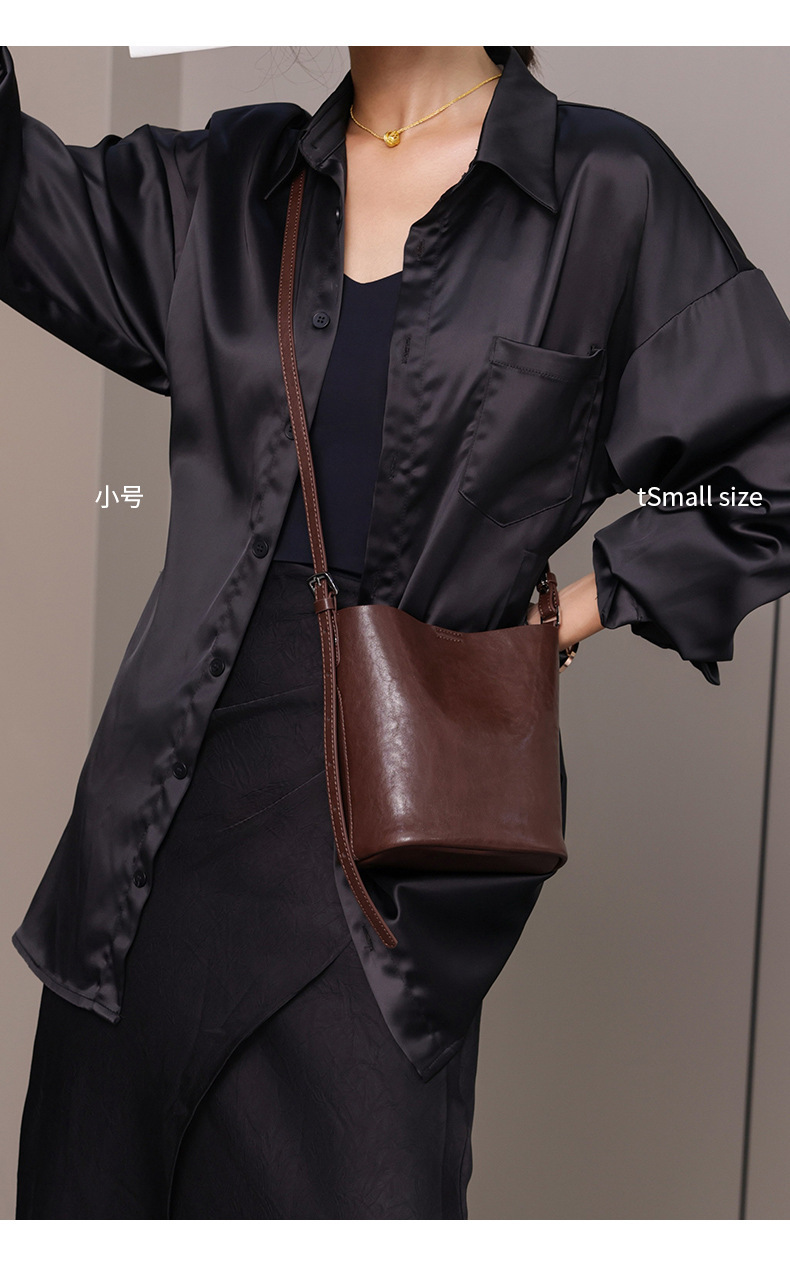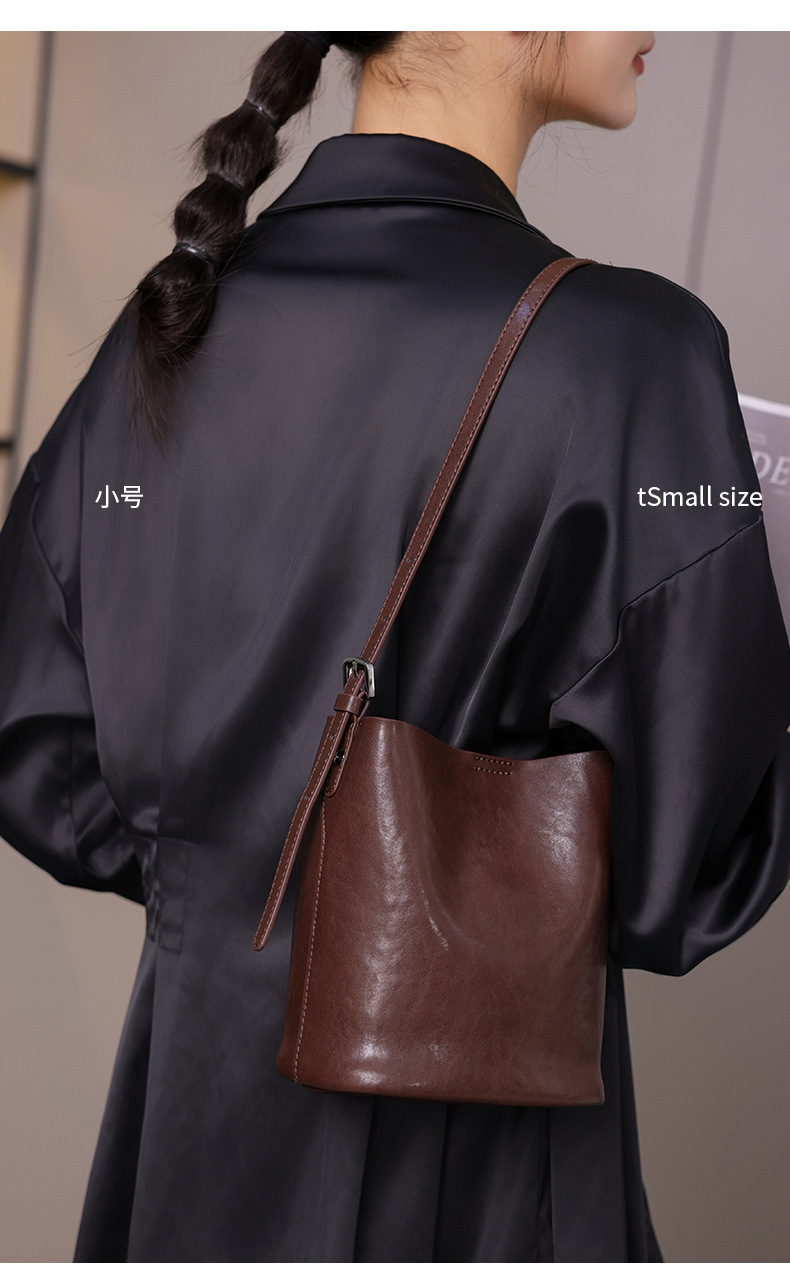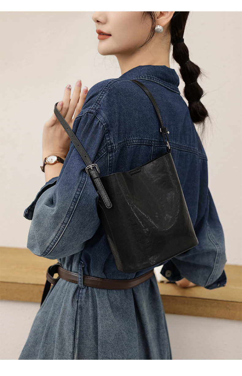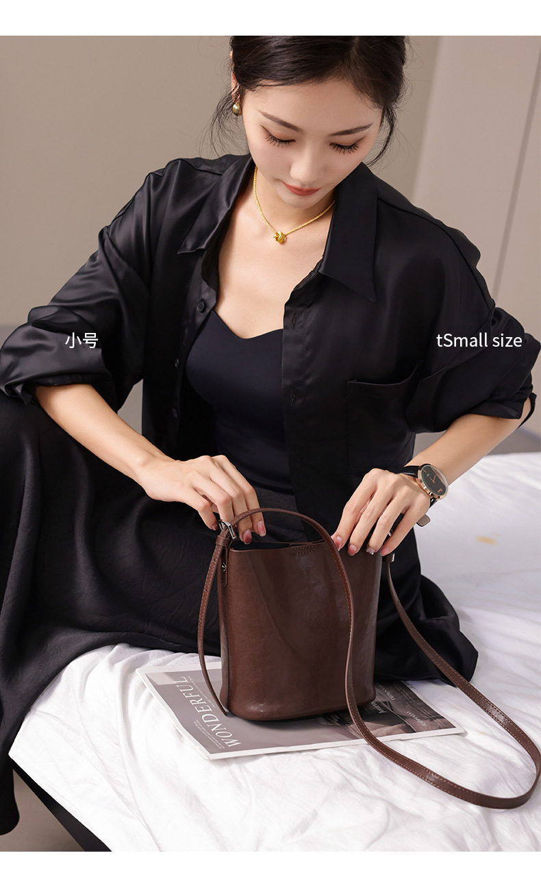 Bolsos de cubo de cuero de vaca vegetal 2024 nuevas tendencias retro bolsos de hombro único de moda bolso de mujer casual