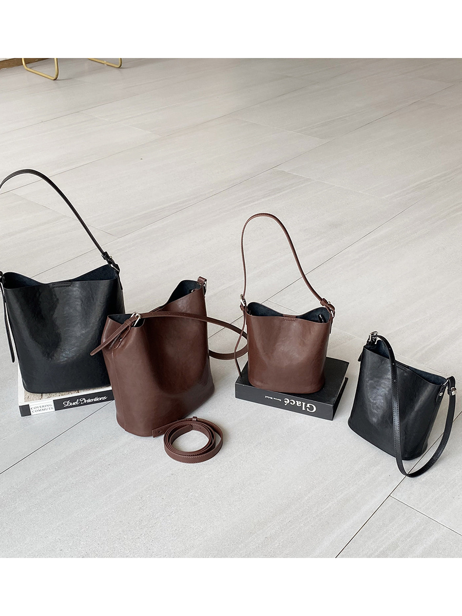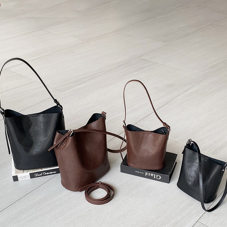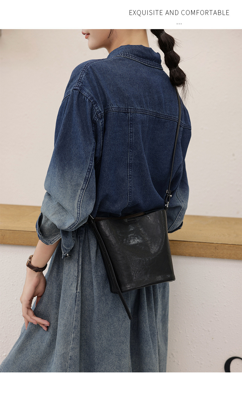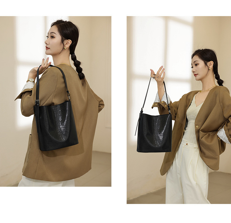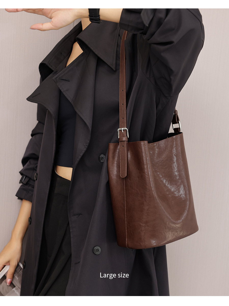 Bolsos de cubo de cuero de vaca vegetal 2024 nuevas tendencias retro bolsos de hombro único de moda bolso de mujer casual