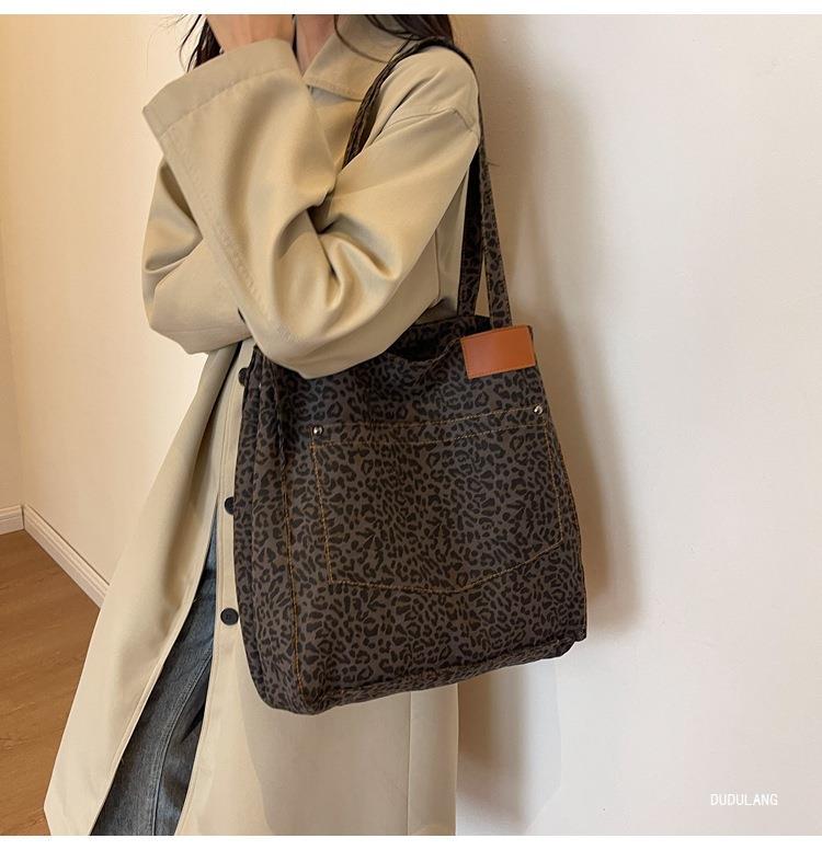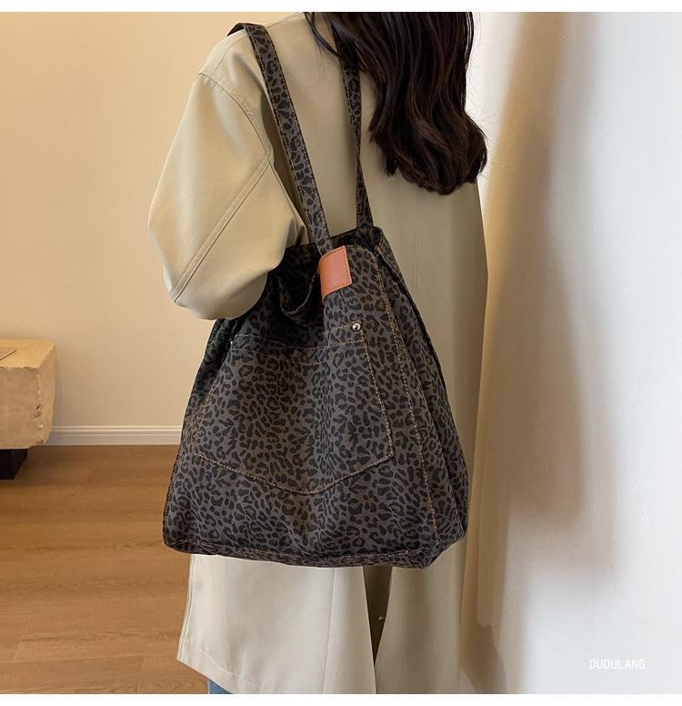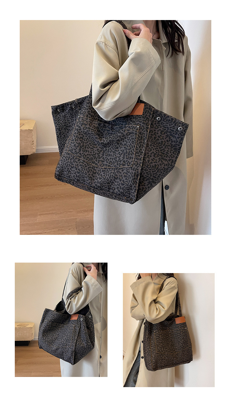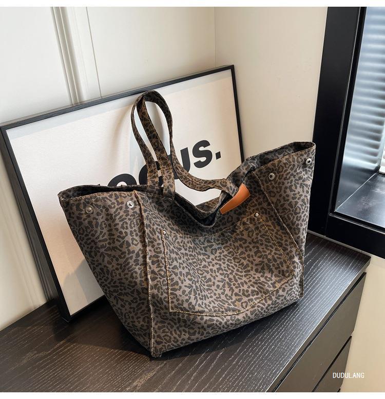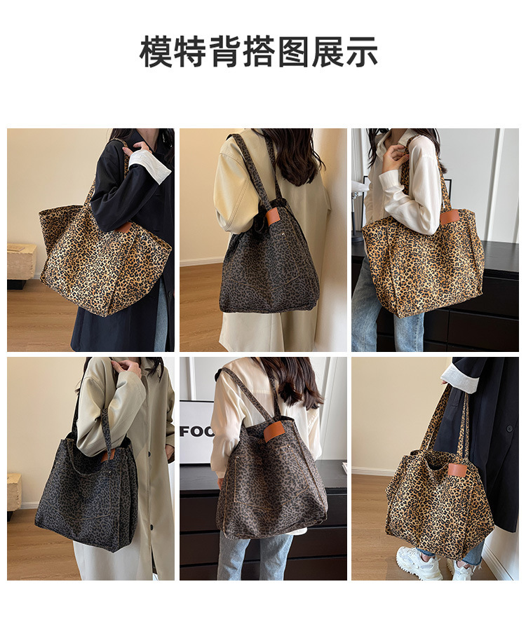 Bolsa de leopardo de comercio exterior mochila inclinada nueva calle frita de Flores rotas en el otoño de 2024 bolsa de mujeres explosivas transfronterizas tote de gran capacidad