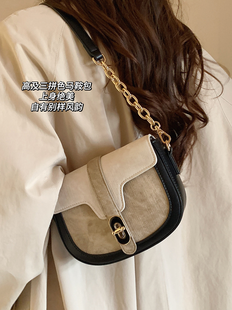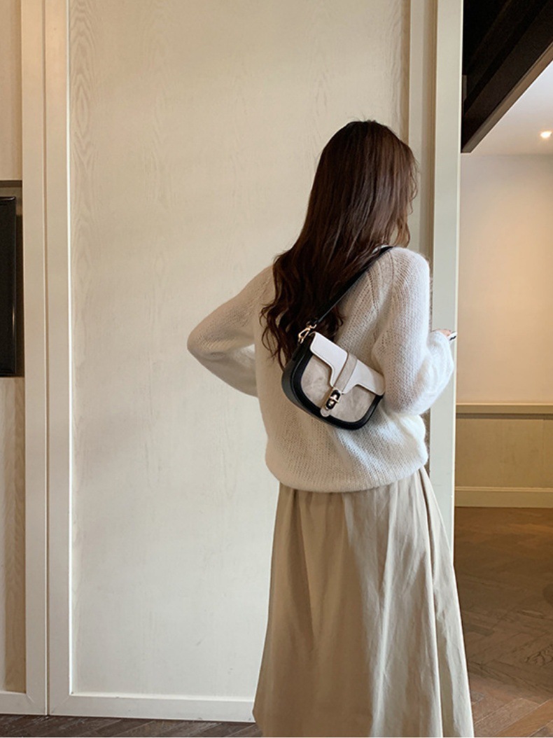 Bolsos de silla de montar de color pincelada de nicho para mujeres 2024 nuevos bolsos semicircular de alta gama bolsos de hombro único bolsos debajo de las axilas un envío