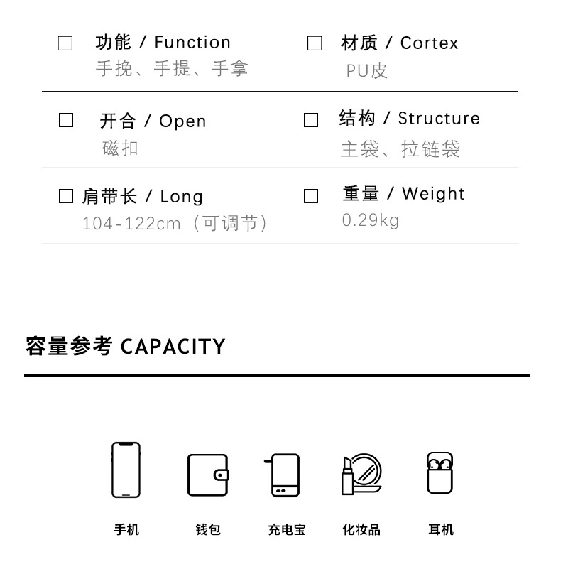 | Color | Kleinlan, naranja dulce, verde frijol, morado bonito, rosa, azul claro, blanco, morado claro, verde, rojo rosa, verde fruta, amarillo claro, té con leche, marrón caramelo, oro, plata brillante, gris plateado, negro |