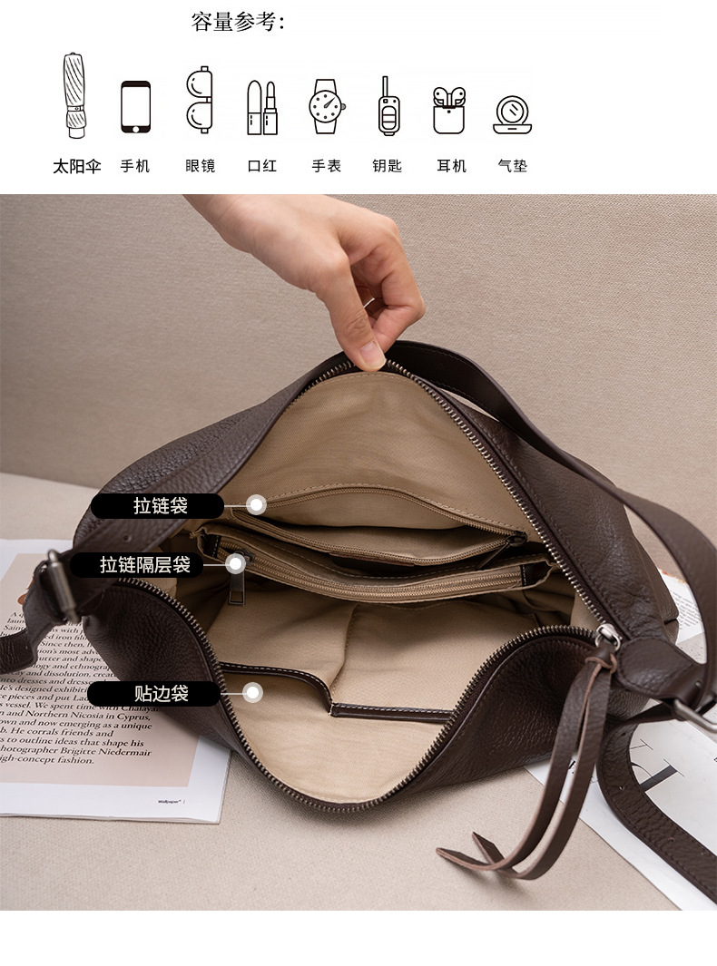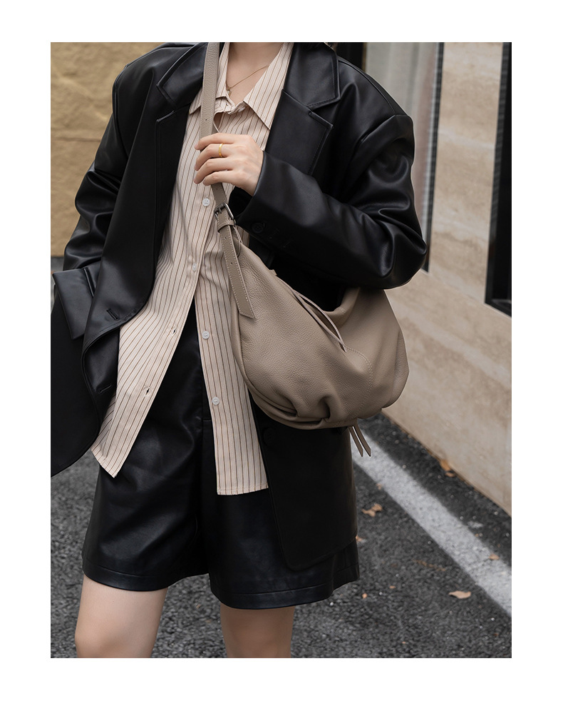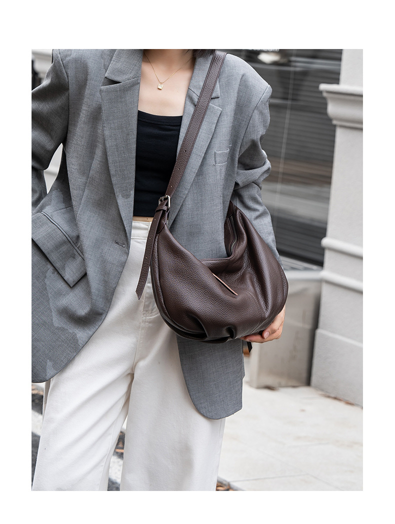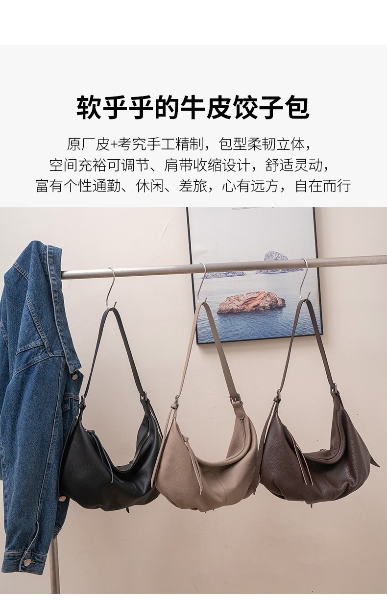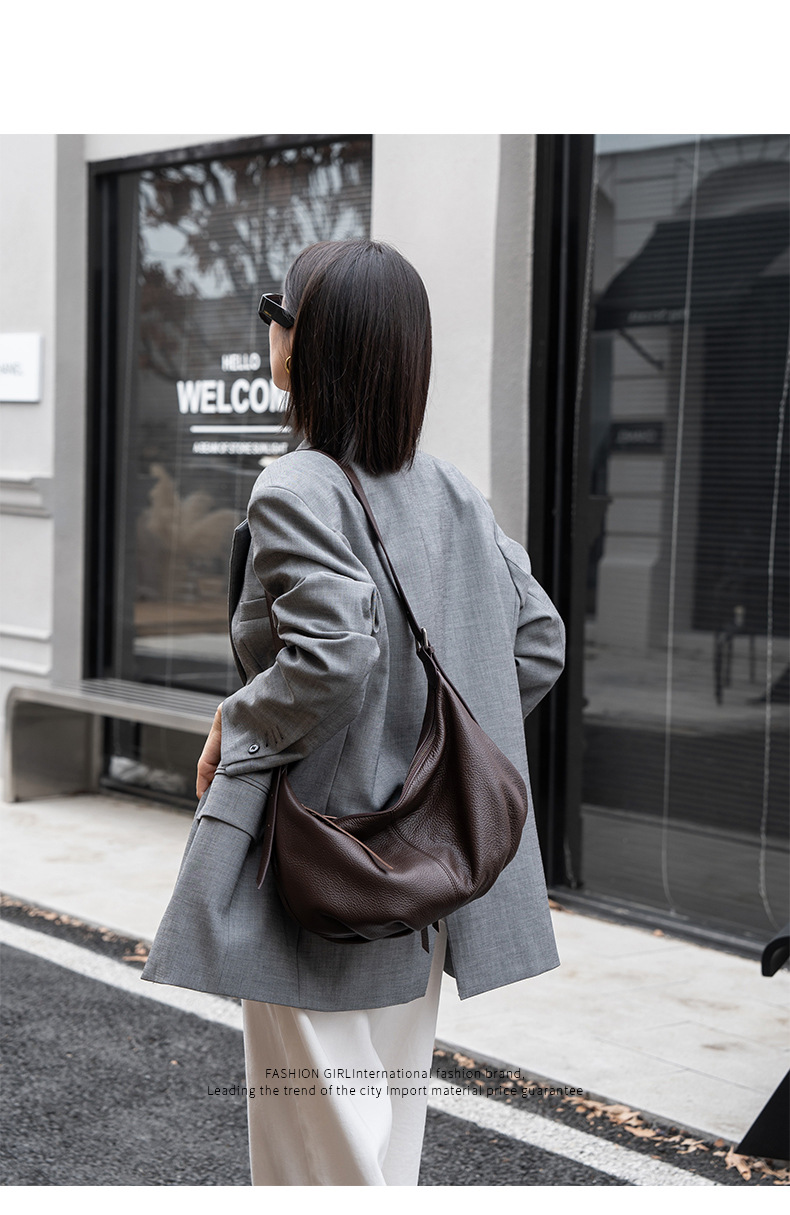 Bolso de mujer de cuero genuino bolso de mujer de gran capacidad 2025 nuevo bolso de albóndigas de cuero de vaca de primera capa con bolso de hombro único de cercanías