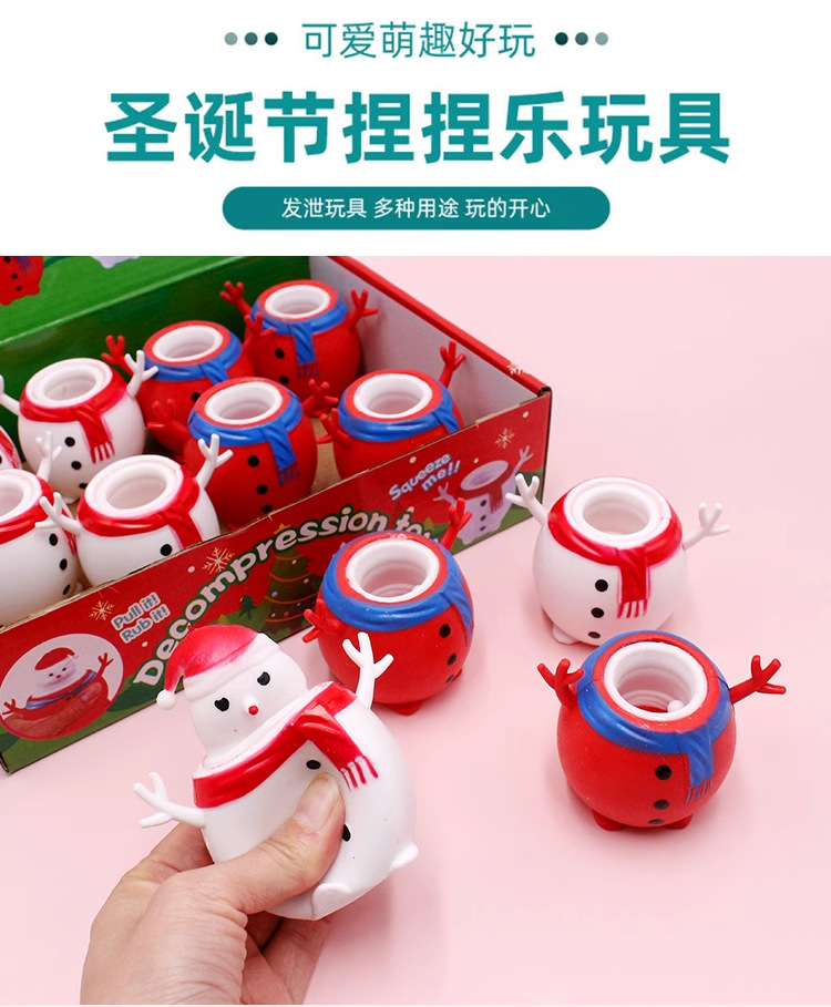 Navidad divertida y divertida para desahogar a papá noel, el conejo y la rata exprimieron y descomprimieron el pequeño regalo del muñeco de nieve para regalar a la gente.
