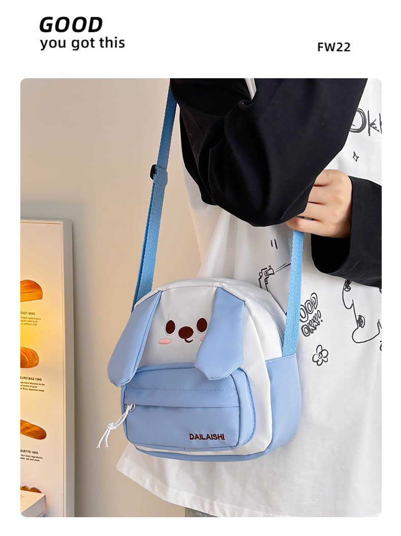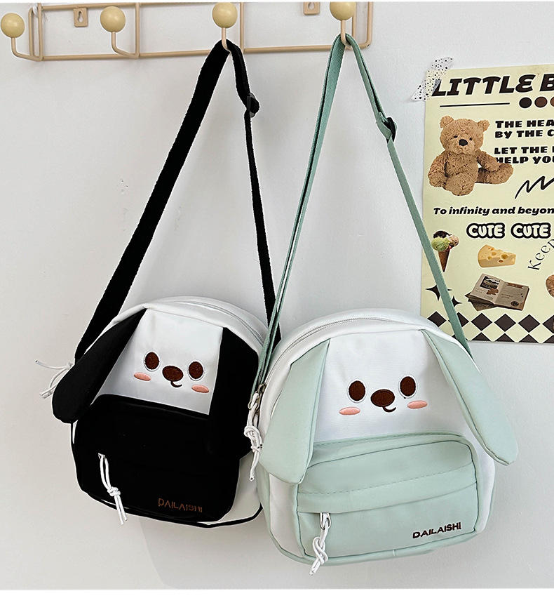 Linda chica de dibujos animados pequeña bolsa de tela pequeña bolsa de mujer INS pequeña frescura estudiante oreja grande bolsa de hombro bolso de teléfono móvil