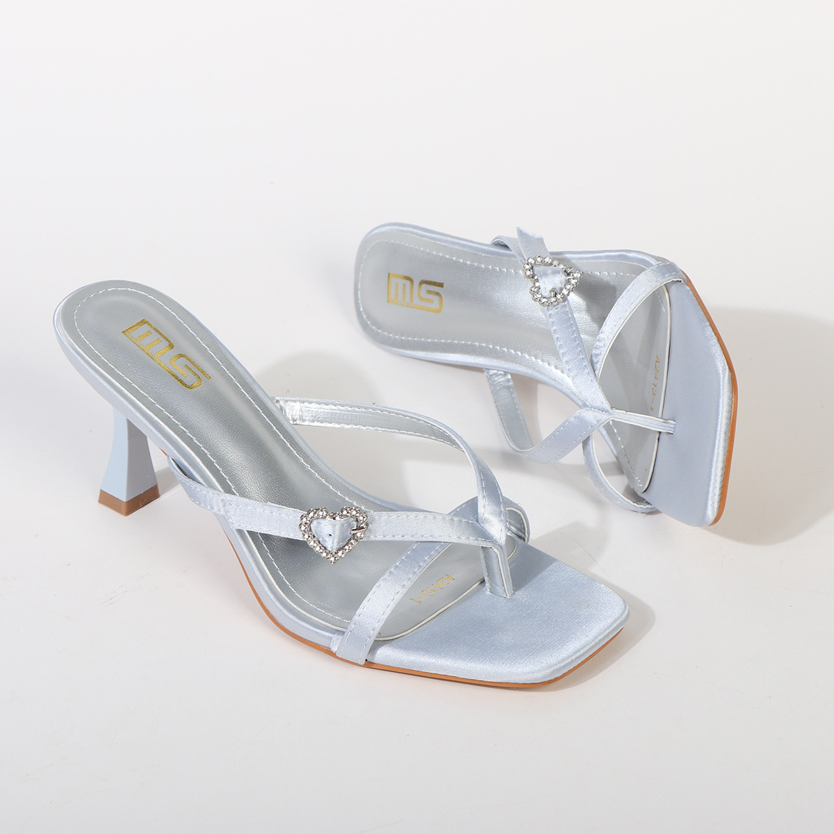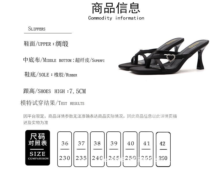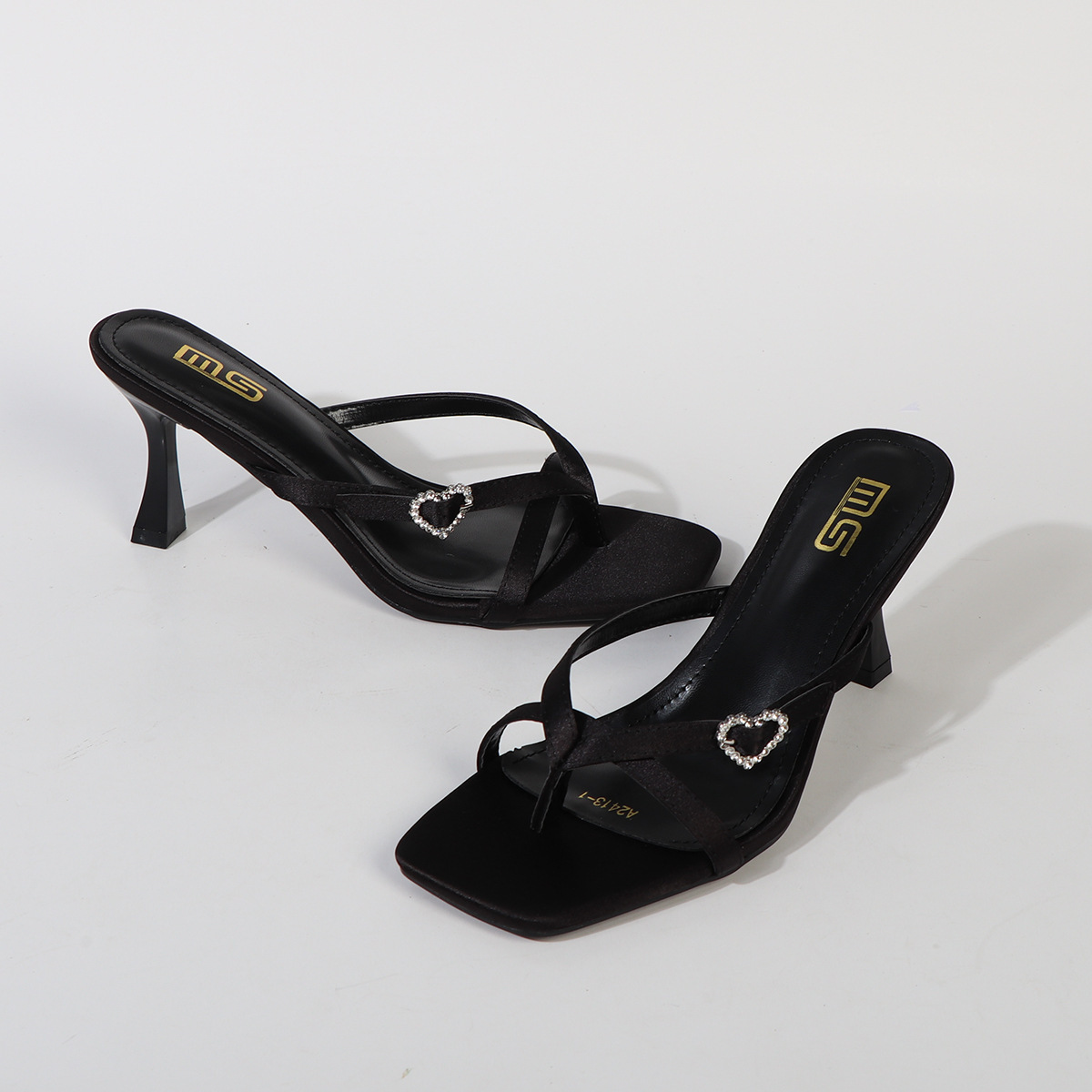 跨境2024秋冬新品女鞋黑色心形搭扣拉带小猫高跟凉鞋外穿夹趾凉拖
