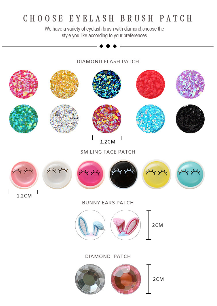 | Especificaciones | Cepillo de pestañas de tubo de ensayo de diamante de color, cepillo de pestañas de tubo de ensayo de cara sonriente, cepillo de pestañas de tubo de ensayo de oreja de conejo, cepillo de pestañas de tubo de ensayo de flor |