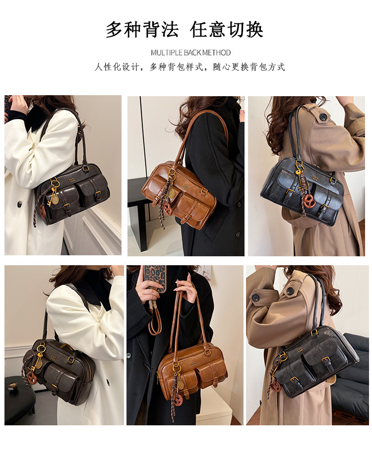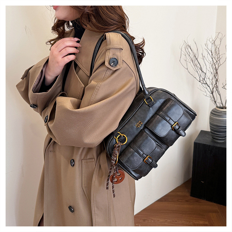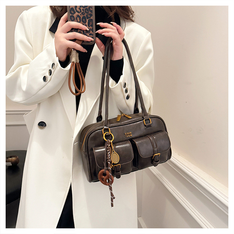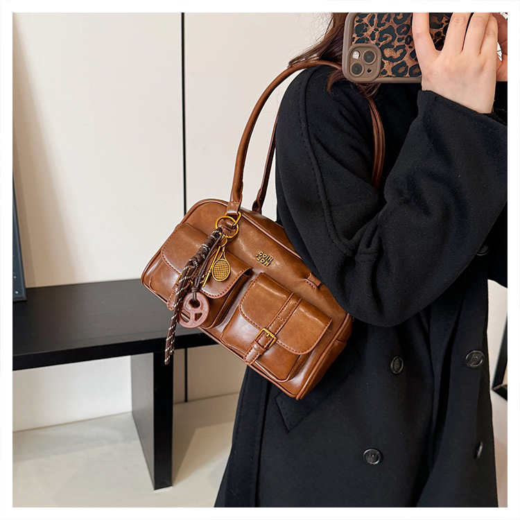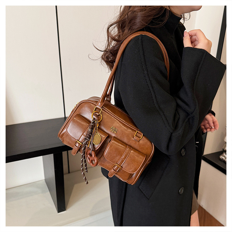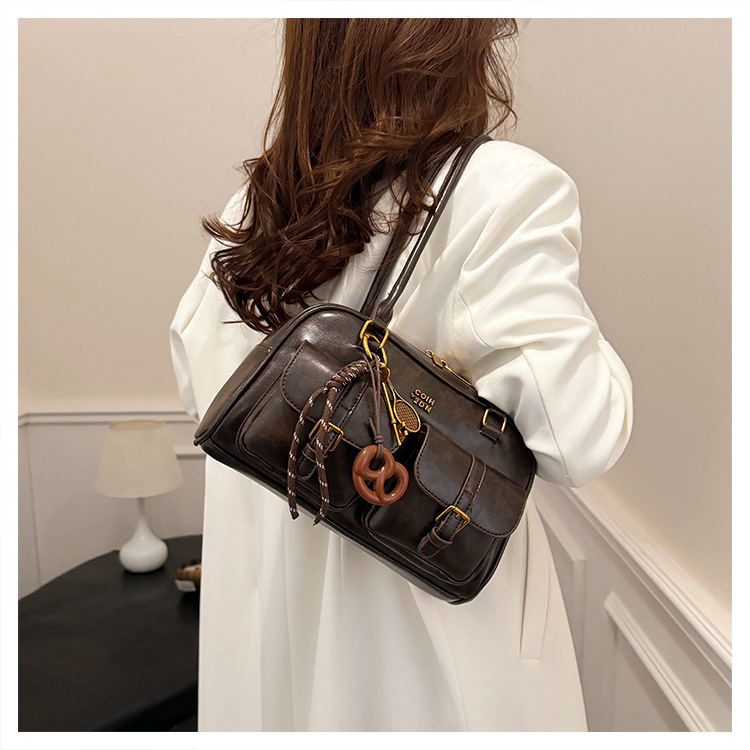 Bolsos para un solo hombro retro otoño e invierno bolsos para axilas de gran capacidad con textura y bolsos de almohada de cercanías