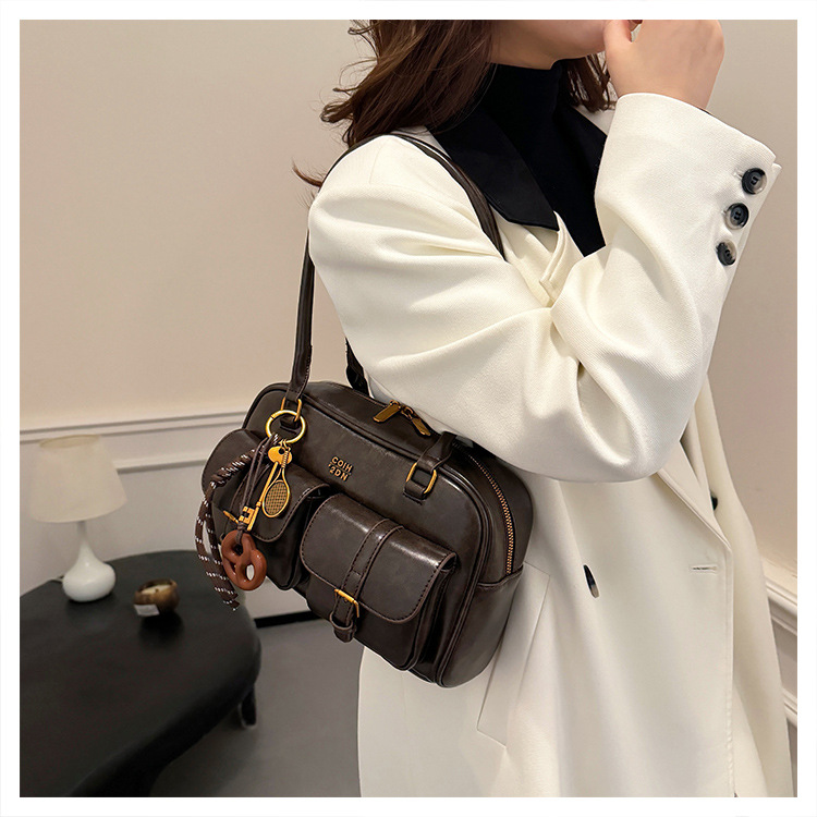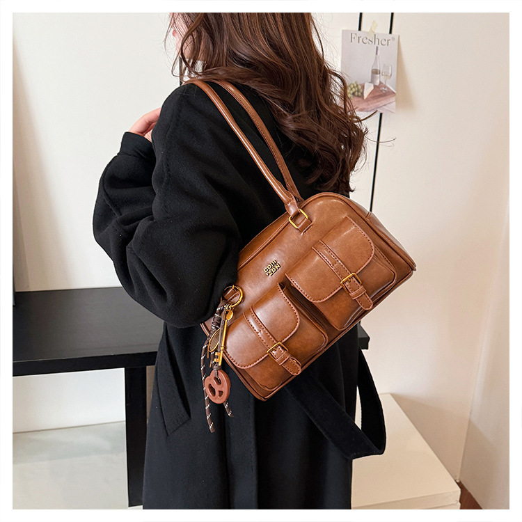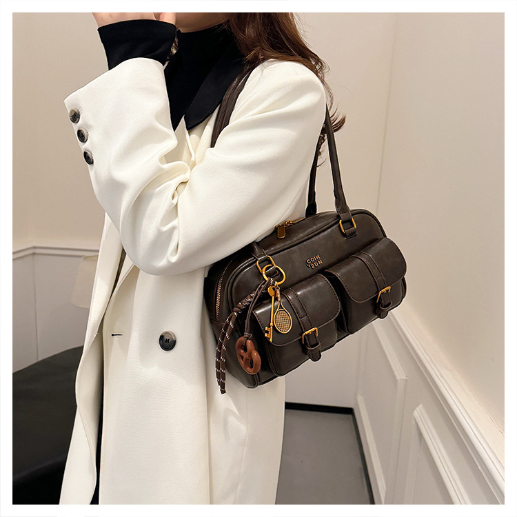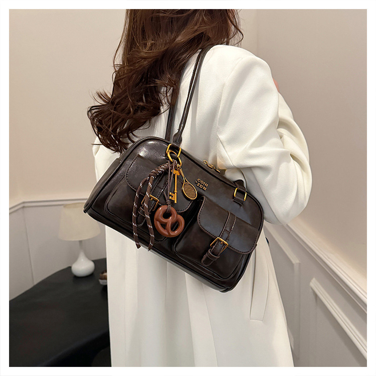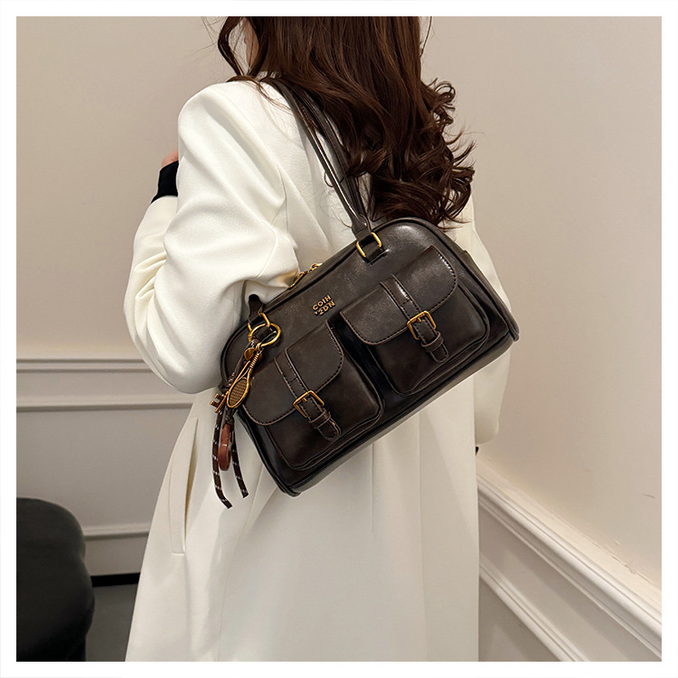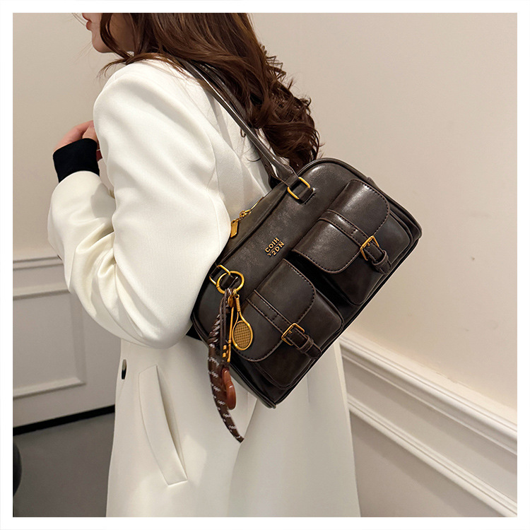Bolsos para un solo hombro retro otoño e invierno bolsos para axilas de gran capacidad con textura y bolsos de almohada de cercanías