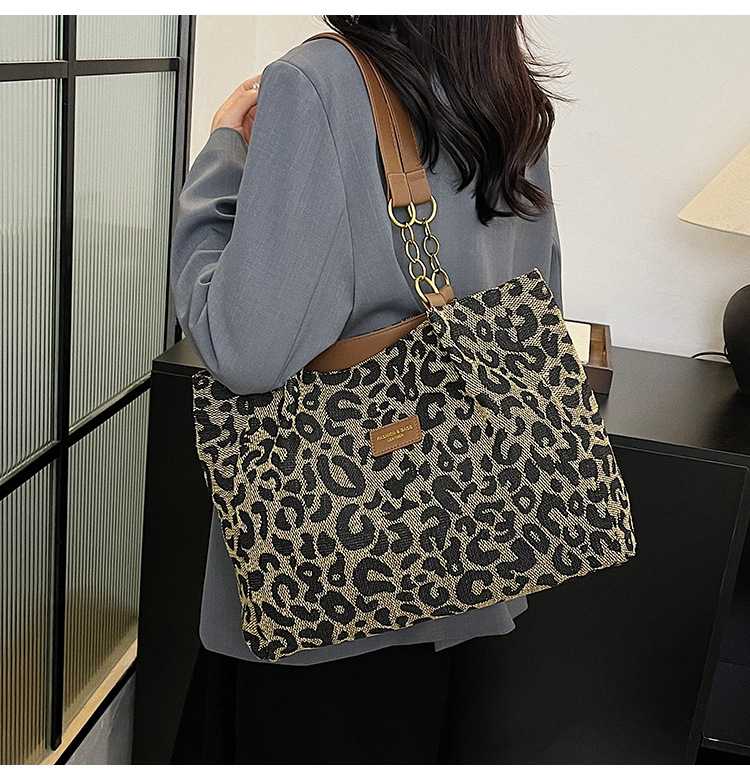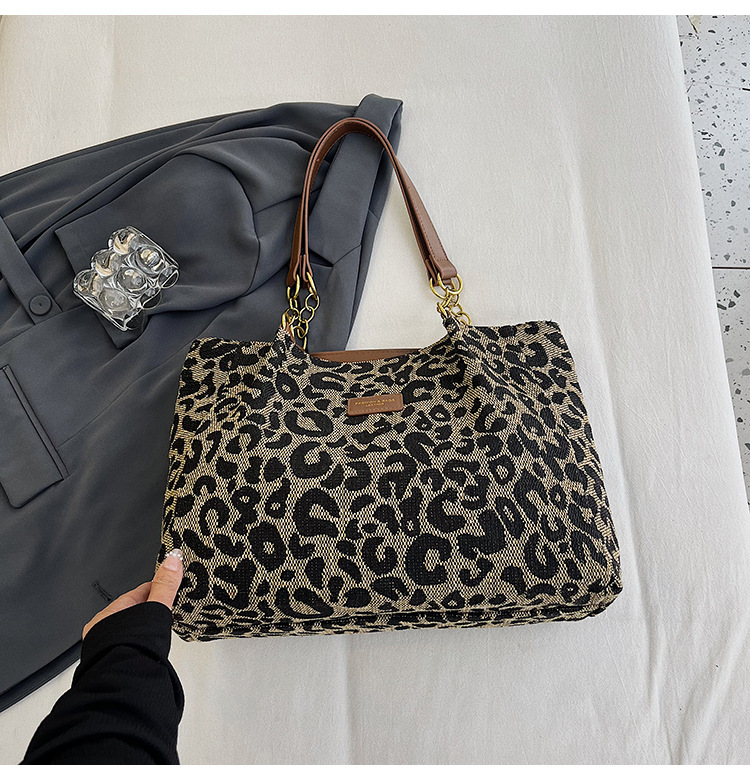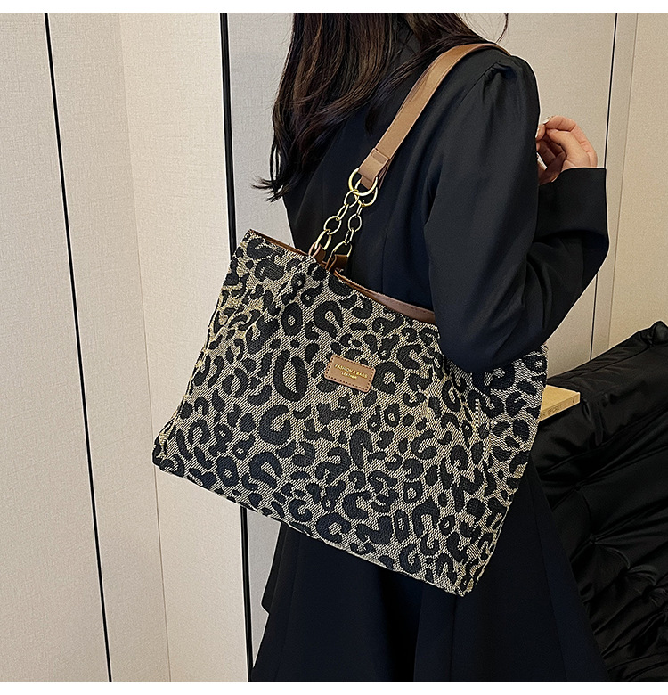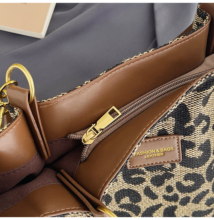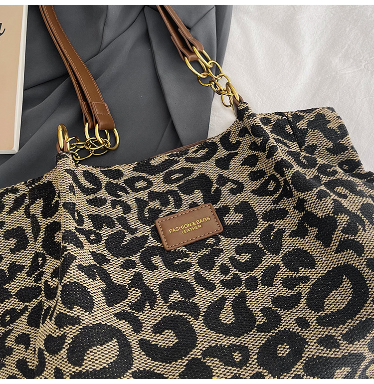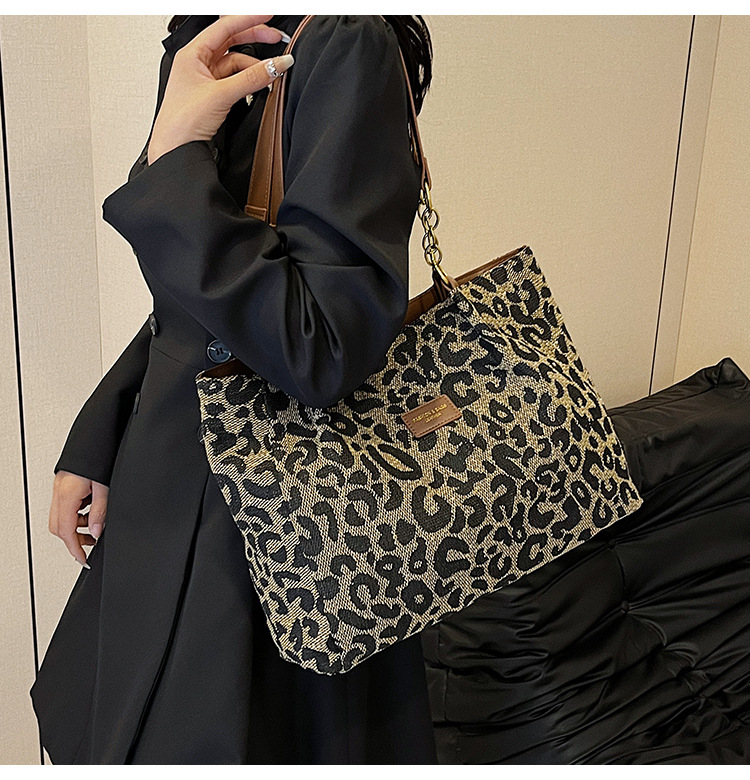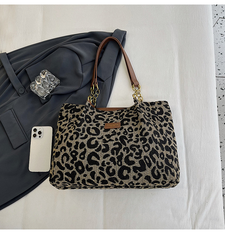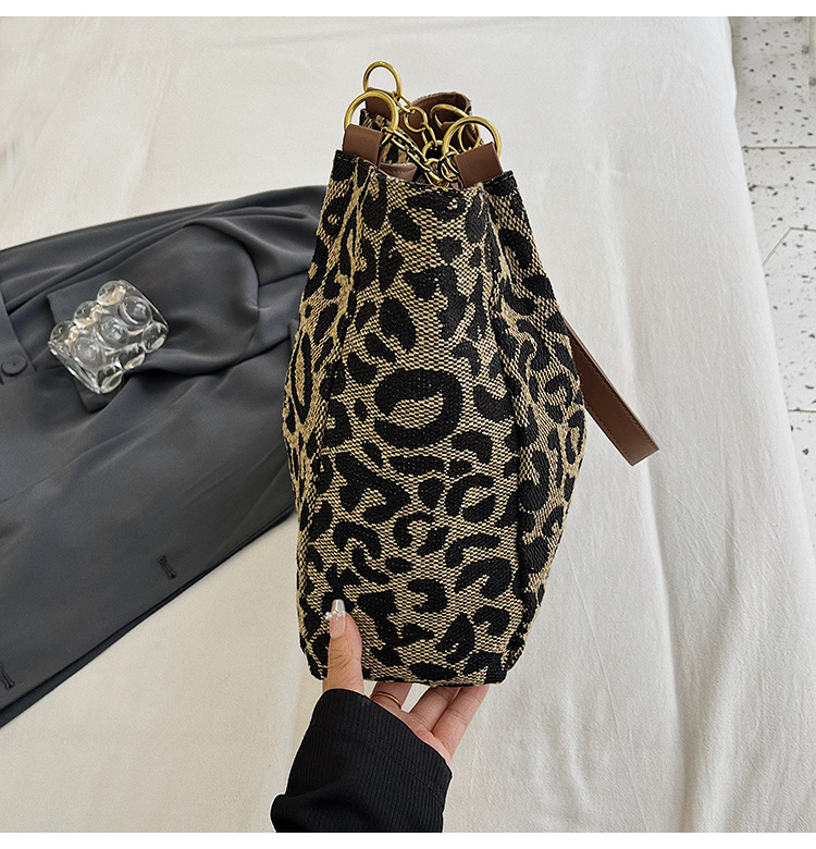 Bolso de punto simple transfronterizo bolso de mujer bolso de hombro 2024 nueva cadena bolso de estilo europeo y americano bolso de leopardo de moda