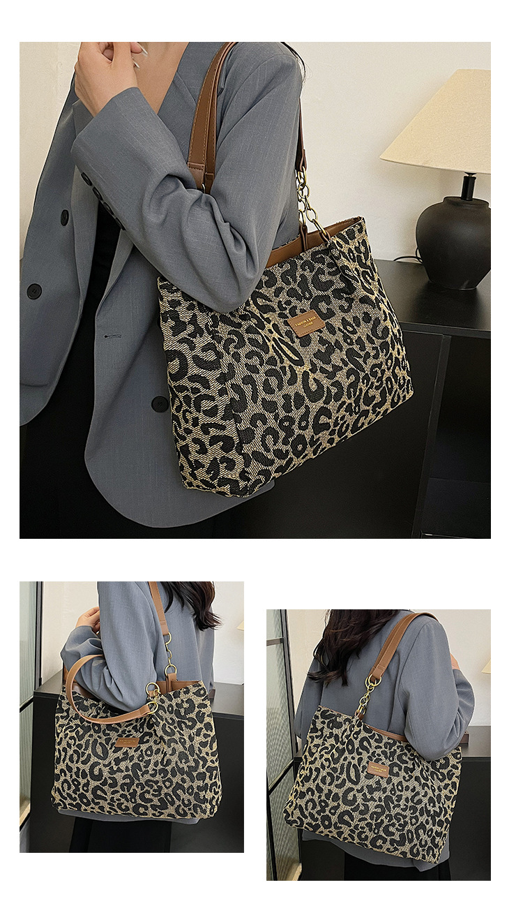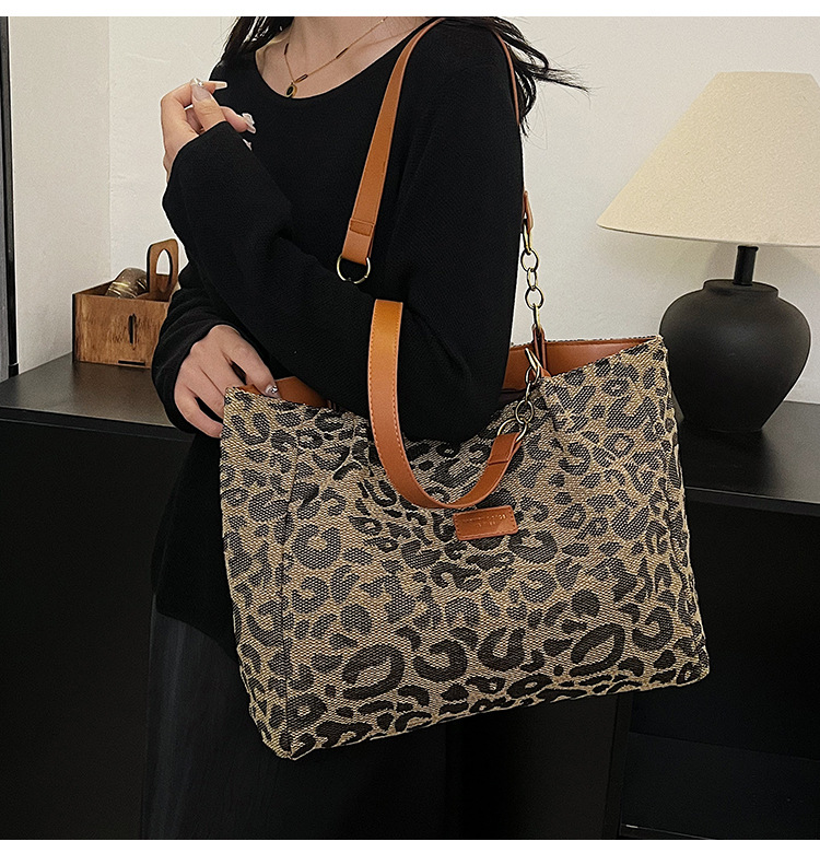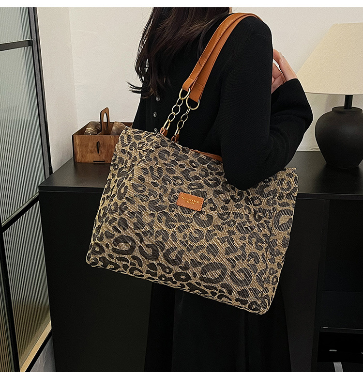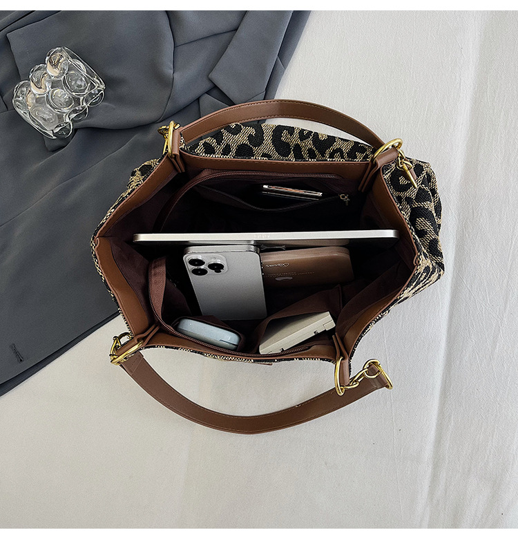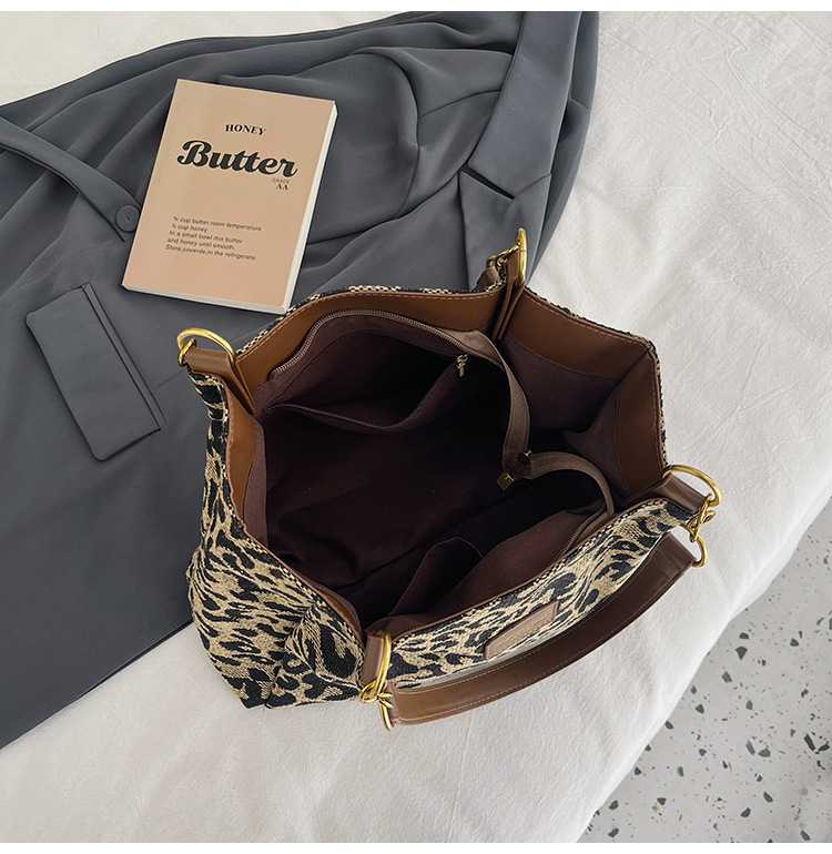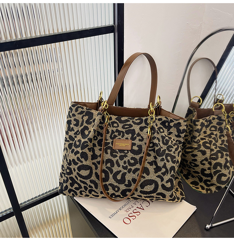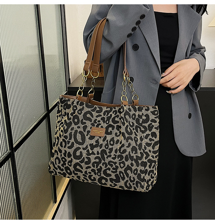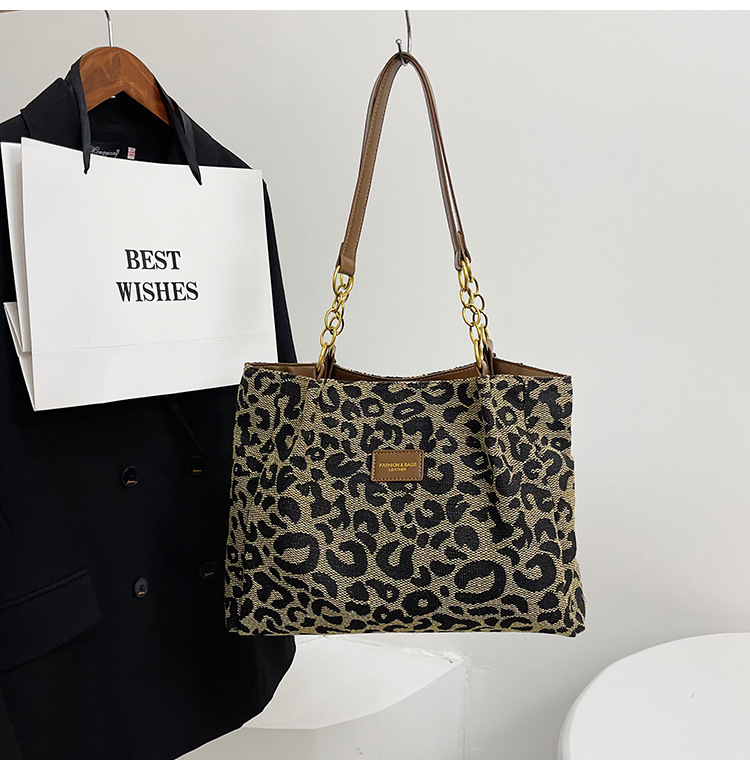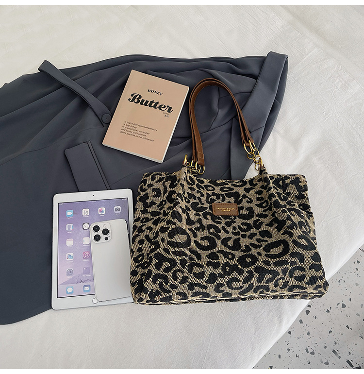 Bolso de punto simple transfronterizo bolso de mujer bolso de hombro 2024 nueva cadena bolso de estilo europeo y americano bolso de leopardo de moda