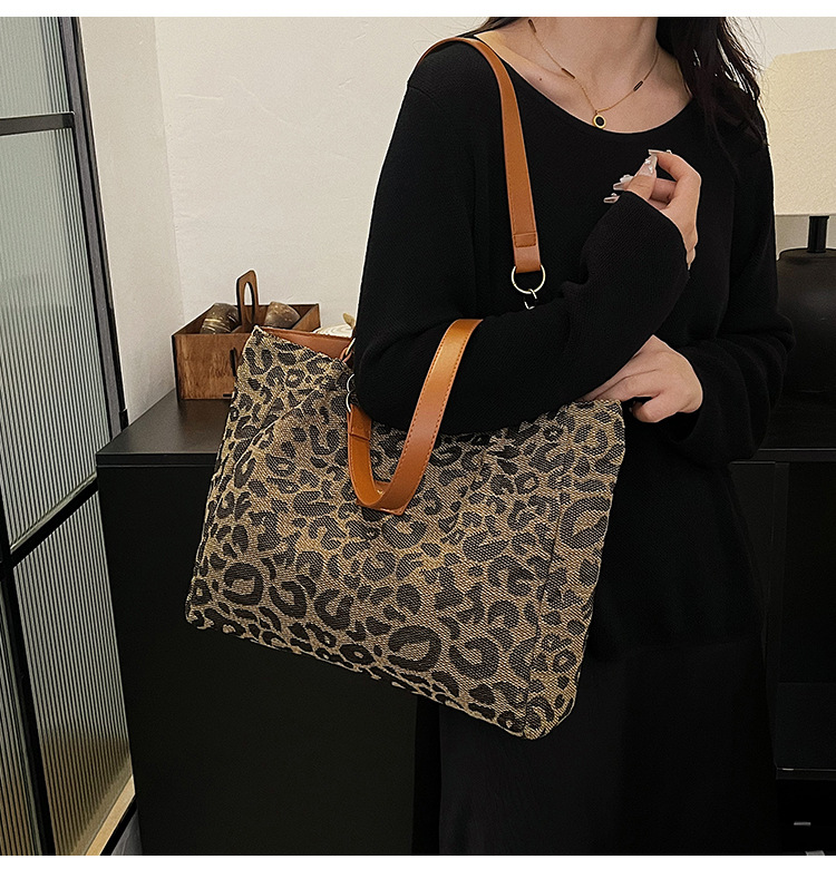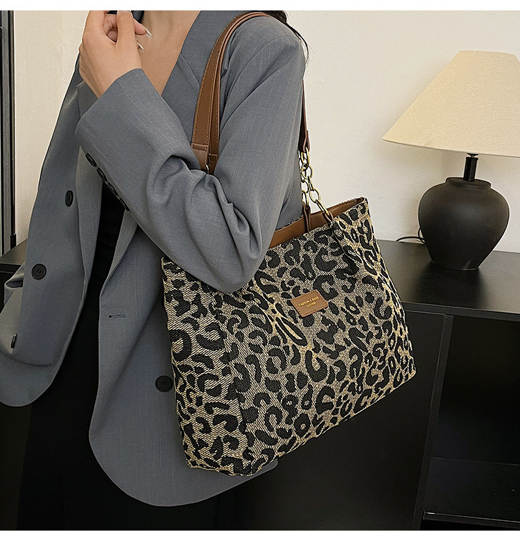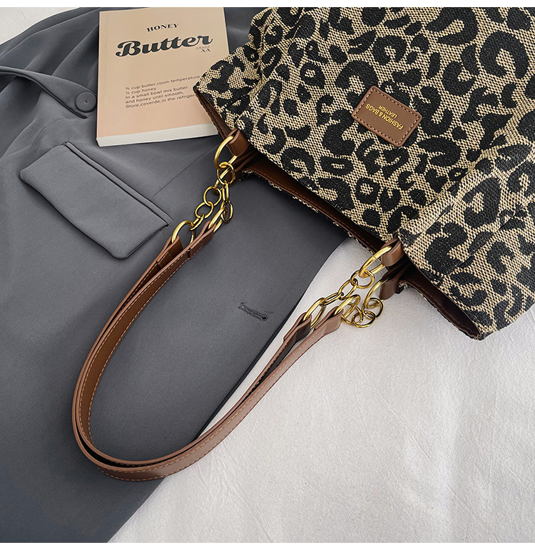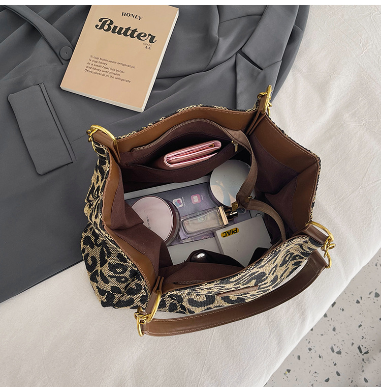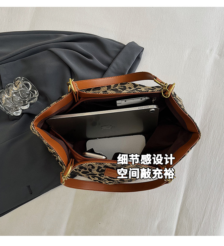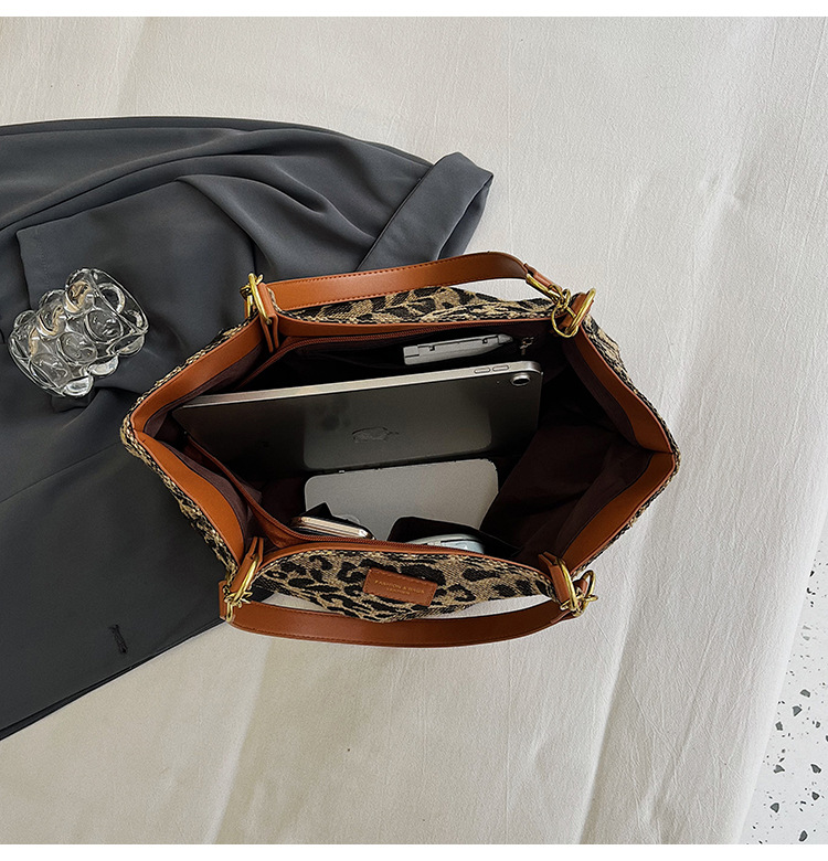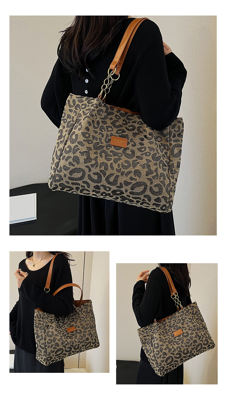Bolso de punto simple transfronterizo bolso de mujer bolso de hombro 2024 nueva cadena bolso de estilo europeo y americano bolso de leopardo de moda