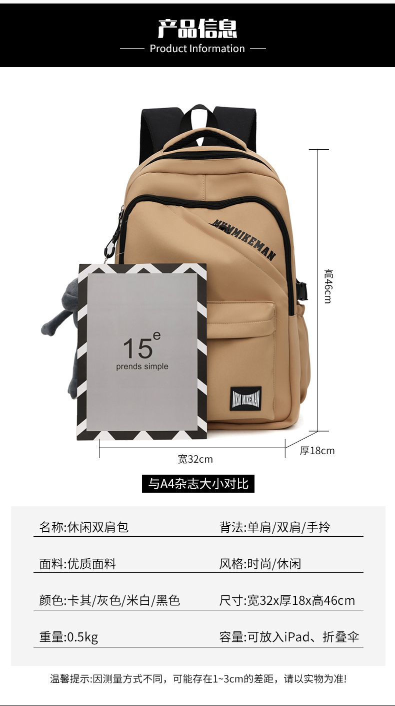 Versión coreana de la nueva mochila de estudiantes de secundaria moda moda moda mochila impresa con letras de moda mochila hombre simple mochila de computadora de cercanías mujer