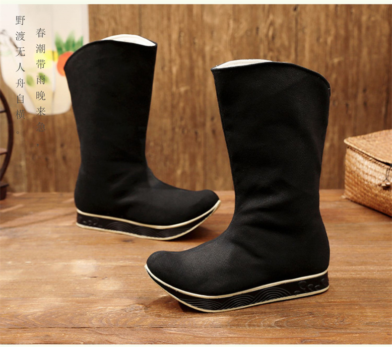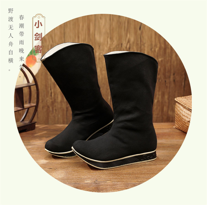 【上新冬季加绒】古装武侠锦衣卫汉服男鞋长筒官复古中式婚皂靴子