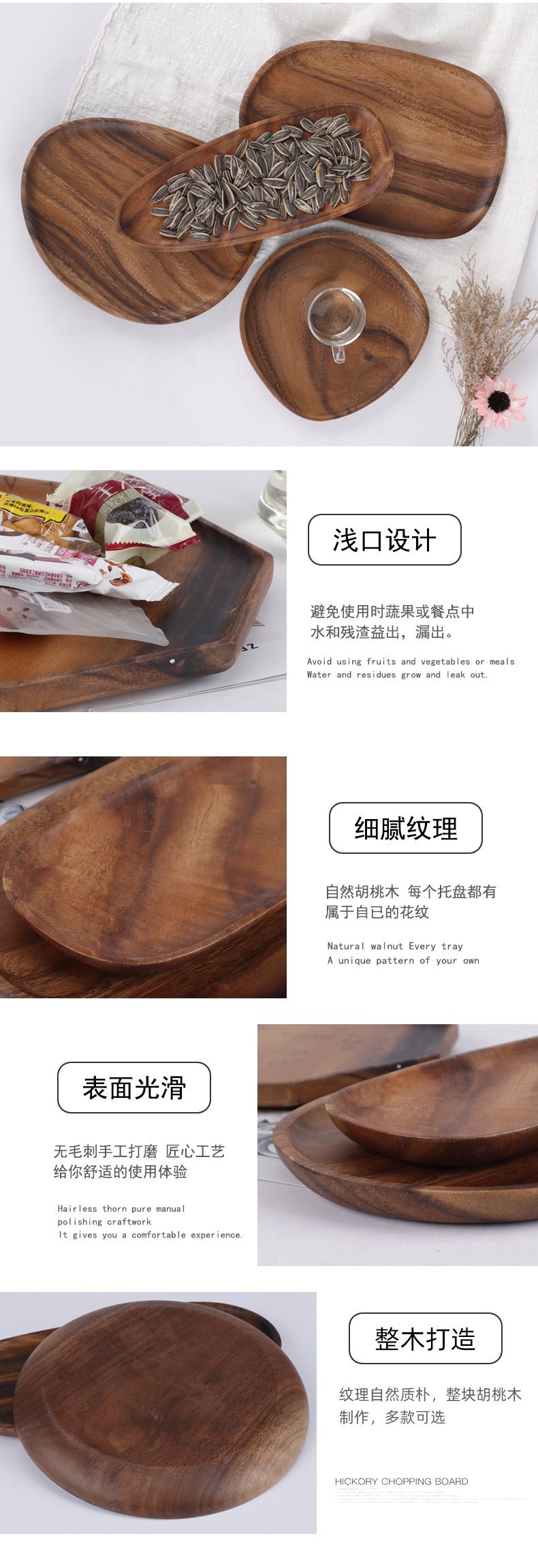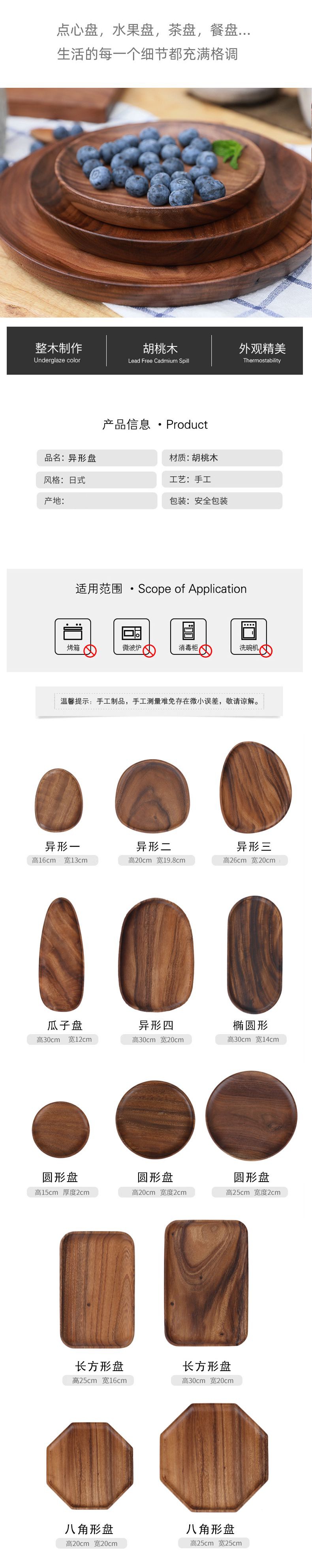 | Color | 胡桃木鹅蛋形16x13,胡桃木石头形20x20,胡桃木心形26x21,胡桃木瓜子形30x12,胡桃木椭圆形30x20,胡桃木正方形16.5x16.5,胡桃木正方形20x20,胡桃木长方形25x16.5,胡桃木长方形30x12,胡桃木长方形30x20,胡桃木圆形15,胡桃木圆形20,胡桃木圆形25,胡桃木八角20x20,胡桃木八角25x25,胡桃木八角30x20,胡桃木八角30x14,胡桃木椭圆30x14,胡桃木圆形三格20cm、,胡桃木方形三格25cm |