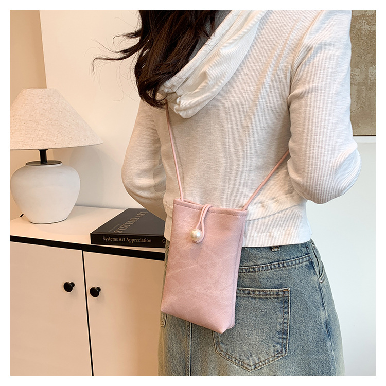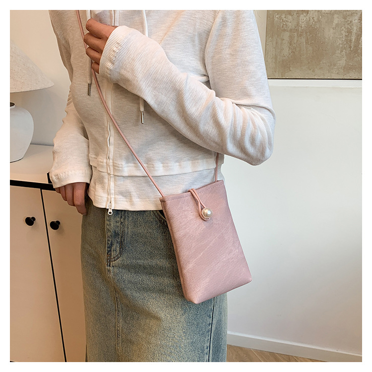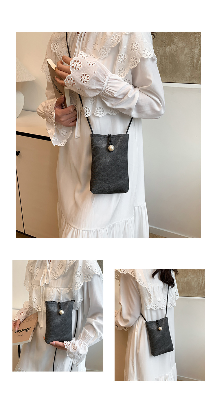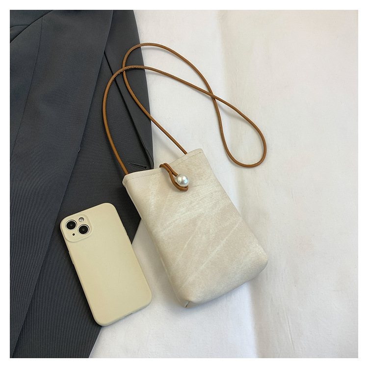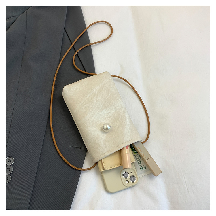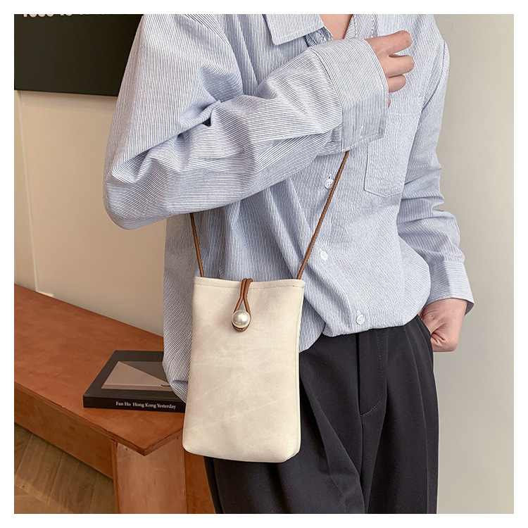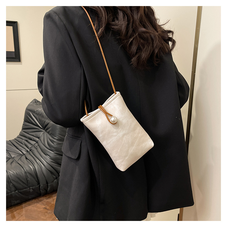 Teléfonos móviles de nicho de alta gama en primavera y verano con bolsos pequeños para mujeres 2025 nueva billetera de cuero blanco simple de un solo hombro