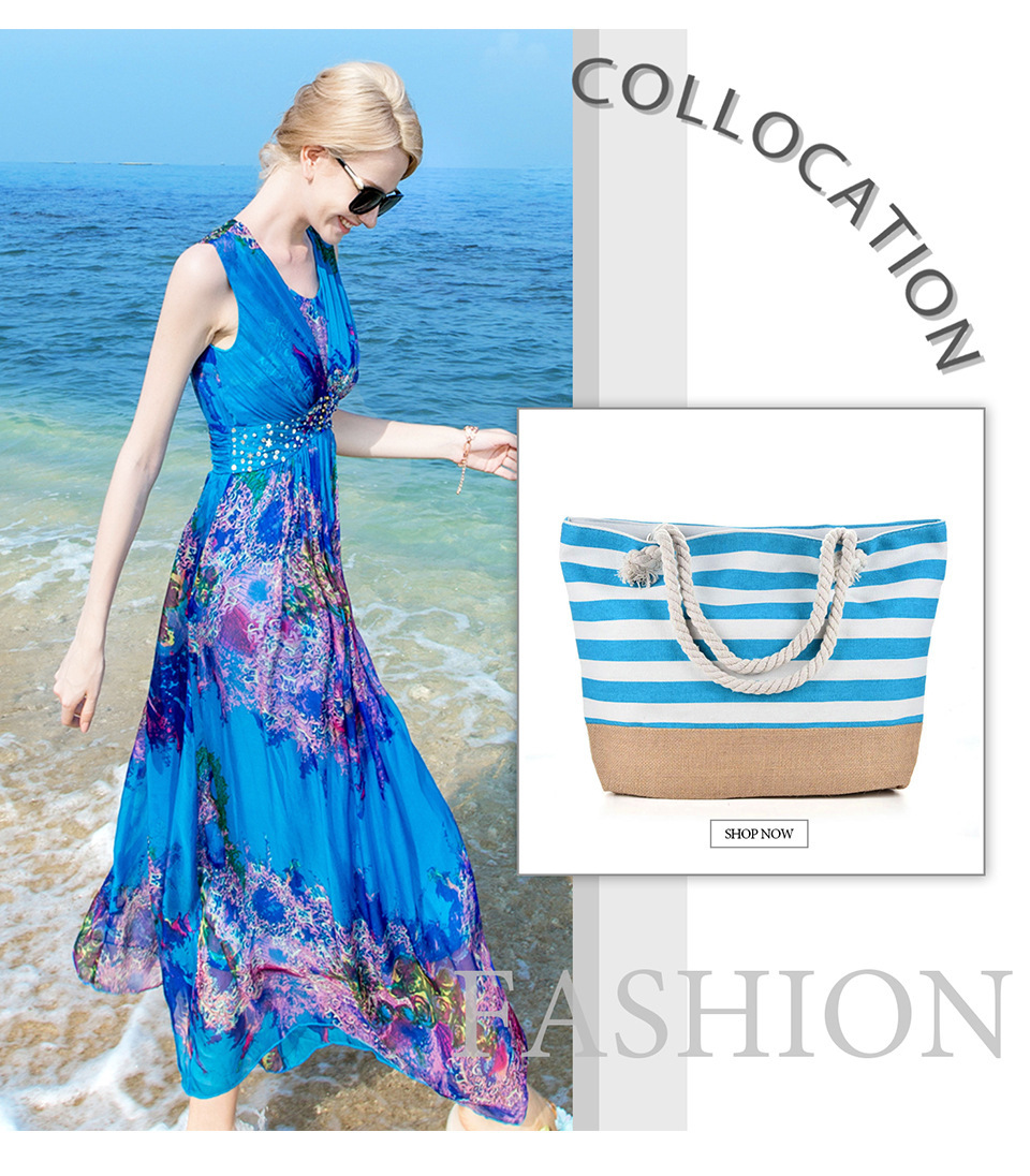 Nueva Bolsa de playa a rayas empalmadas, bolso de hombro único para mujeres, bolso de hombro único, cuerda de cáñamo grueso para el ocio, bolso de lona para mujeres de un solo hombro de gran capacidad