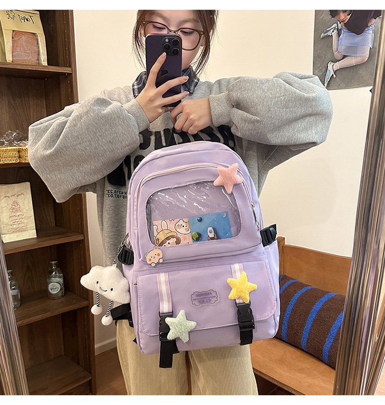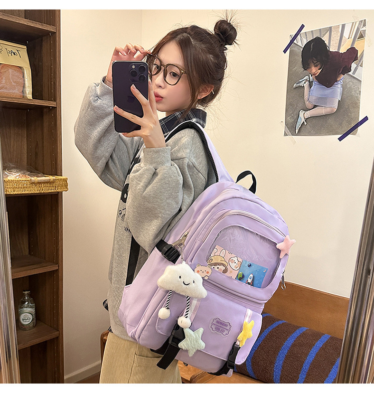 Mochilas escolares de moda bolsos de hombro para niñas estudiantes de primaria y secundaria sencillos paños transfronterizos ligeros bolsos de mano al por mayor bolsos de gran capacidad
