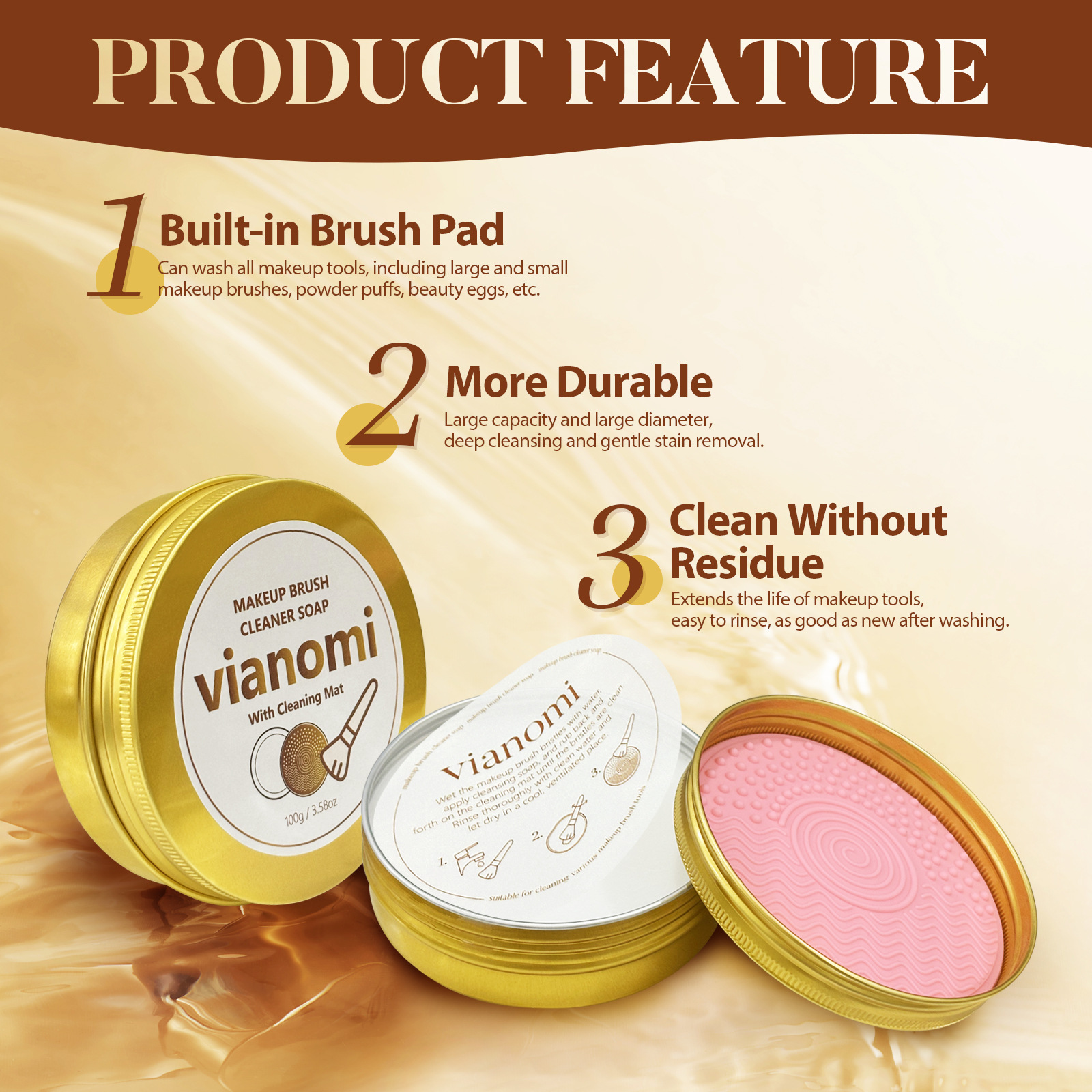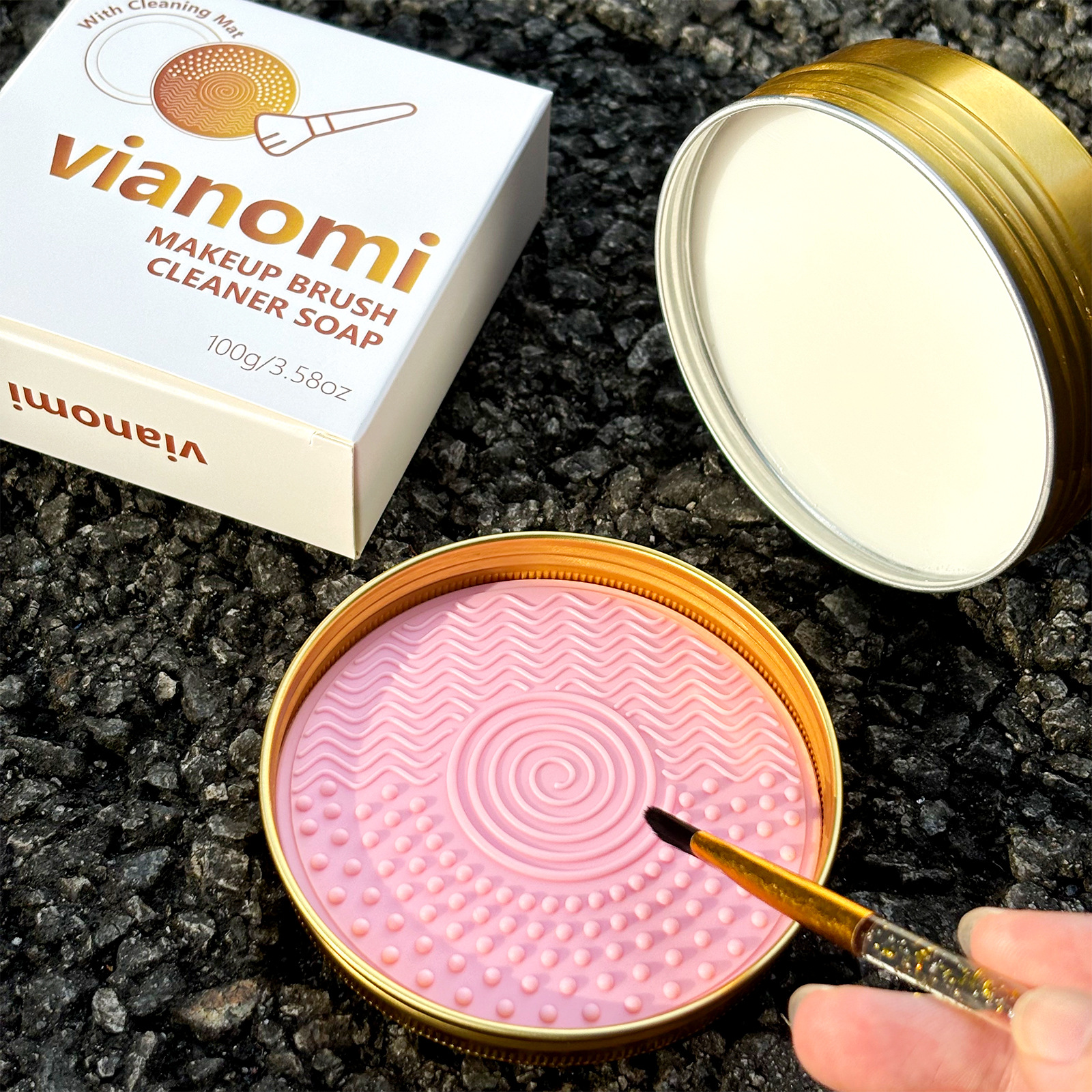 Vianomi cepillo de maquillaje jabón de limpieza con almohadilla de lavado