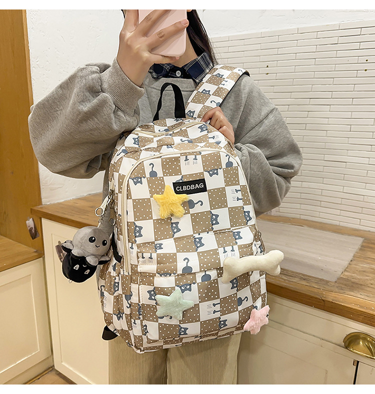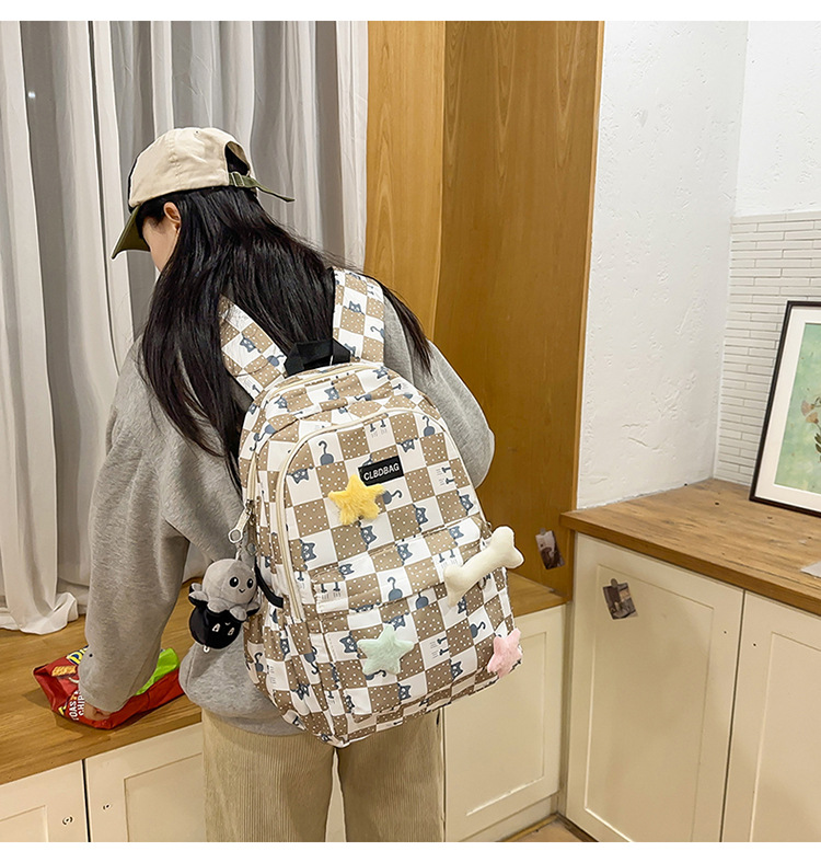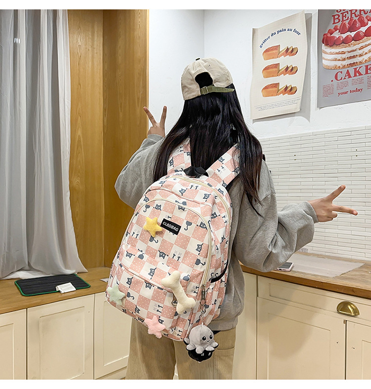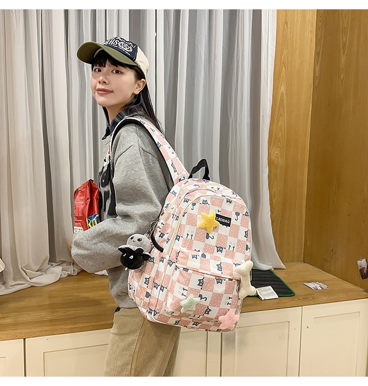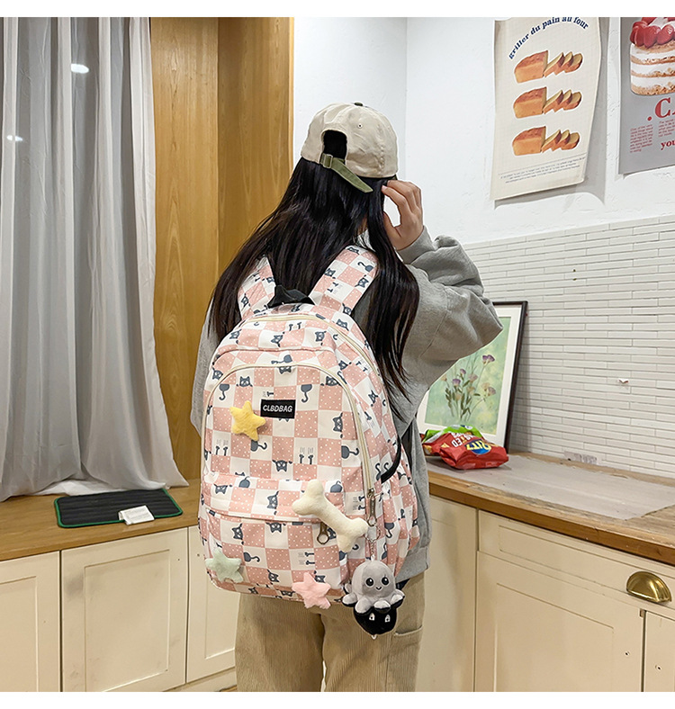 Los nuevos estudiantes de secundaria son ligeros y llevan la versión coreana de la mochila de hombro femenino. los estudiantes del campus de gran capacidad tienen mochilas de moda.