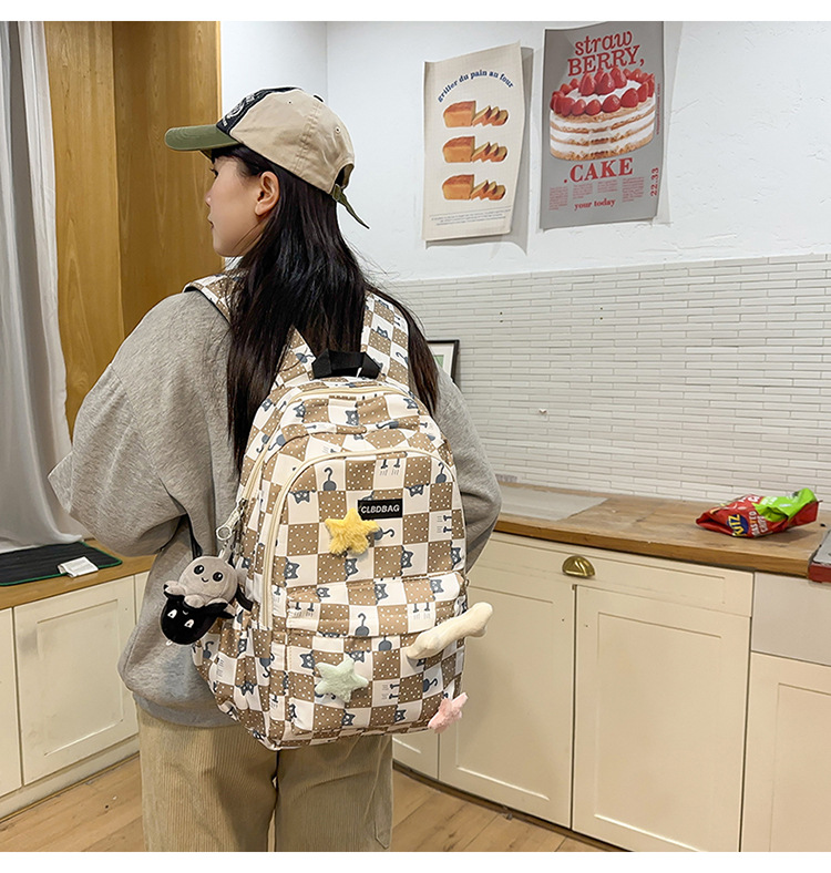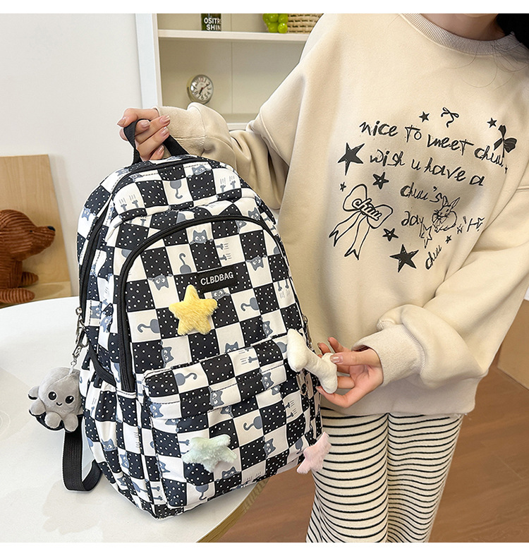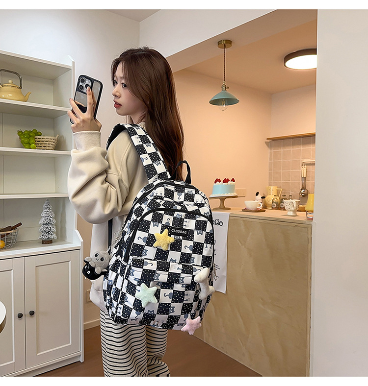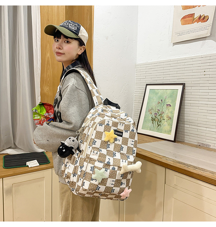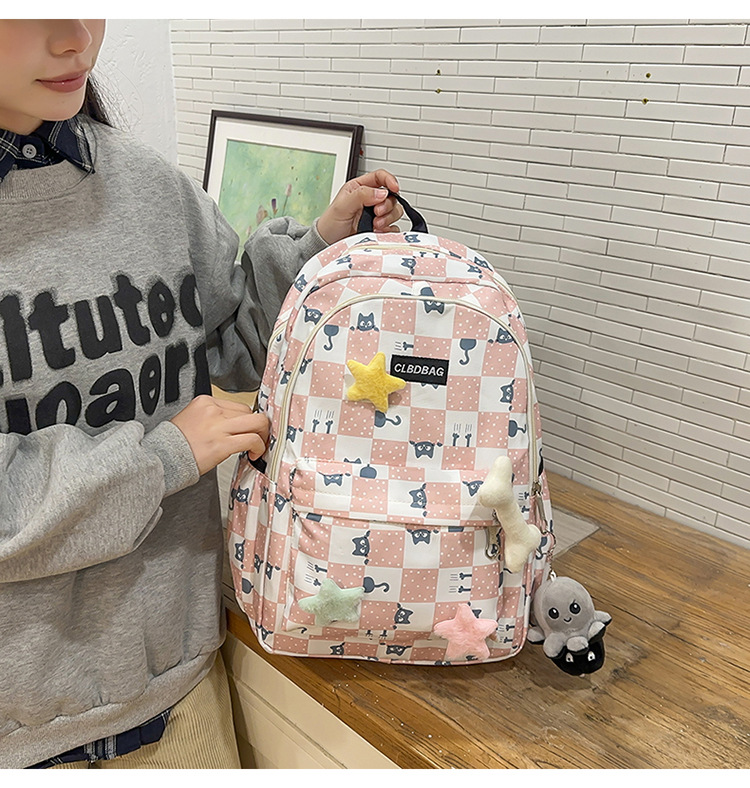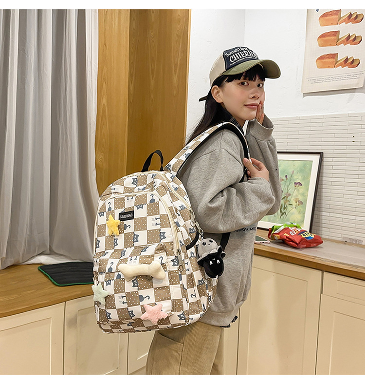 Los nuevos estudiantes de secundaria son ligeros y llevan la versión coreana de la mochila de hombro femenino. los estudiantes del campus de gran capacidad tienen mochilas de moda.